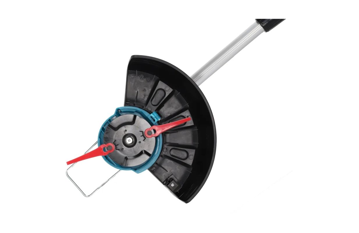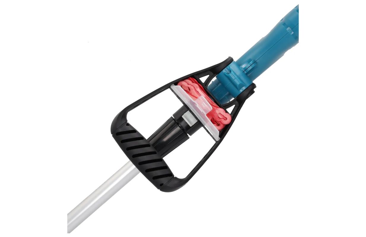 Телескопическая регулируемая ручка, которой оснащен триммер, позволяет пользователю регулировать его длину в соответствии с индивидуальными предпочтениями. Кроме того, регулировка угла поворота телескопической рукоятки обеспечивает легкое маневрирование, что особенно полезно при кошении в труднодоступных местах. Также следует отметить ограничитель металлической кромки триммера, который не только служит препятствием для ровного среза, но и позволяет пользователю точно определить границы зоны скашивания.