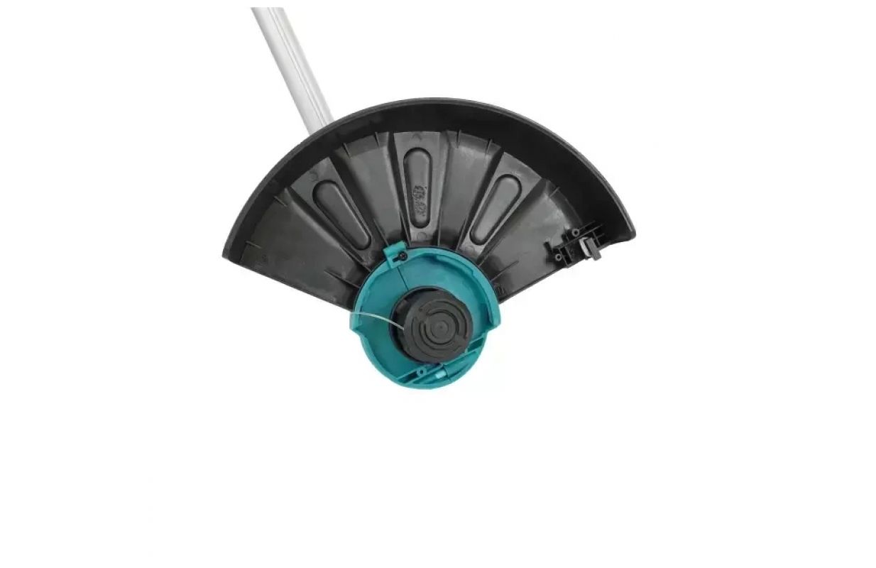 Косилка работает от надежного бесщеточного двигателя. Леска диаметром 1,6 мм может использоваться для низкой и мелкой травы, а режущий нож - для высокой сухой травы. Диаметр реза для лески составляет 300 мм, а для ножа - 255 мм. Устройство также имеет две скорости: 6500/мин для лески и 7500/мин для ножа. Электронная панель управления облегчает управление косилкой. Для большего комфорта в комплект входят дополнительная D-образная рукоятка и ремни безопасности. Предохранительный выключатель защищает от случайного пуска.