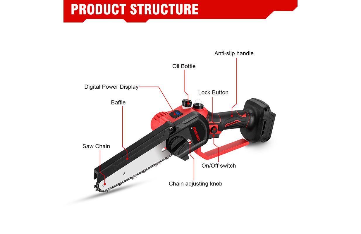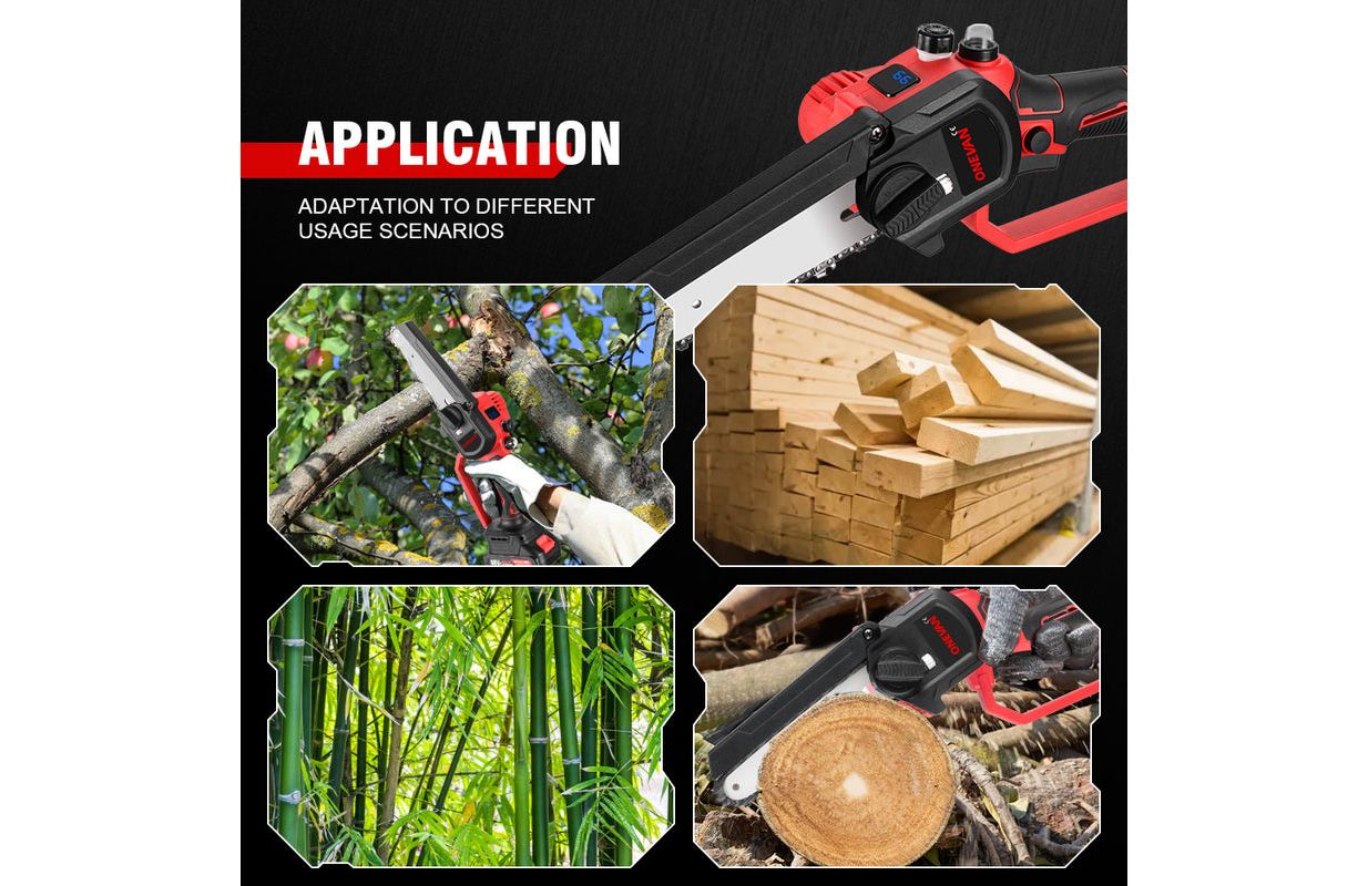 ● С автоматическим распылением смазочного масла. ● Острая и прочная цепь: цепь из высококачественного сплава, износостойкая и долговечная, быстрая и гладкая пила без заклинивания. ● Широкое применение: эта электрическая бензопила имеет широкий спектр применения, может использоваться для рубки леса, резки древесины, обрезки веток и так далее. ● Мощный бесщеточный двигатель: высокая мощность, более стабильная производительность, чем у цепной пилы, модифицированной угловой шлифовальной машиной. Высокая нагрузка такая, что не может легко сгореть. ● Портативный дизайн: мягкая резиновая ручка, противоскользящая и впитывающая пот; Расширенная конструкция перегородки, предотвращающая разбрызгивание древесной щепы во время резки; Конструкция отверстия для отвода тепла, эффективная вентиляция и отвод тепла.