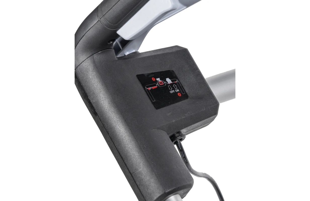 - Тихая работа — позволяет комфортно стричь газон без громкого шума