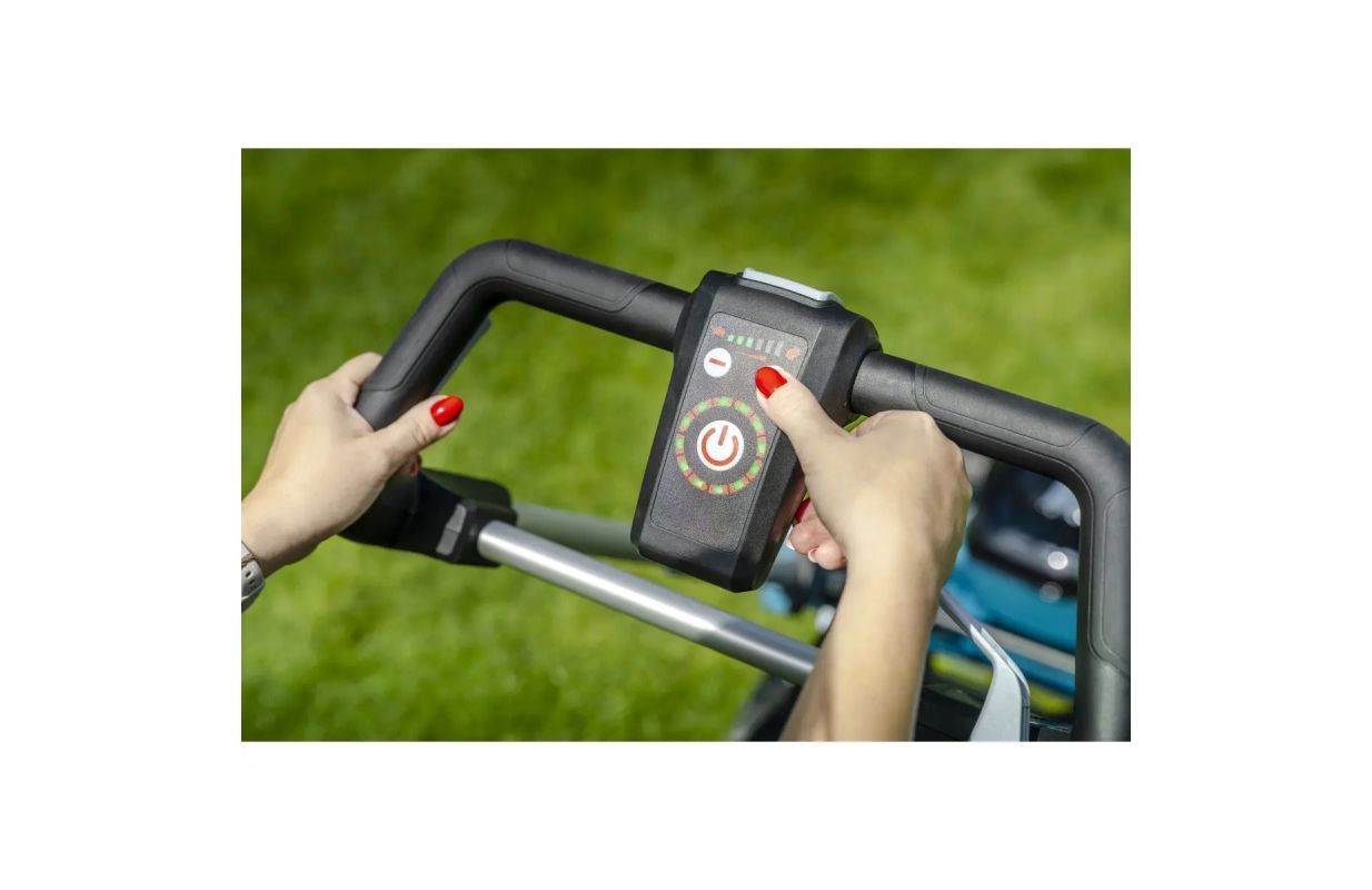 Мощный электрический мотор с редуктором GT (General Transmission) — это одно из ключевых решений, которое отличает эту газонокосилку. Устройство достигает отличного баланса между мощностью и экономией энергии, обеспечивая эффективную стрижку без потери производительности. Безщеточный мотор отличается долговечностью, большей энергоэффективностью и тихой работой, что значительно улучшает комфорт использования. Благодаря этой технологии газонокосилка не только работает дольше, но и требует меньше обслуживания, что делает ее более надежной в повседневном использовании.