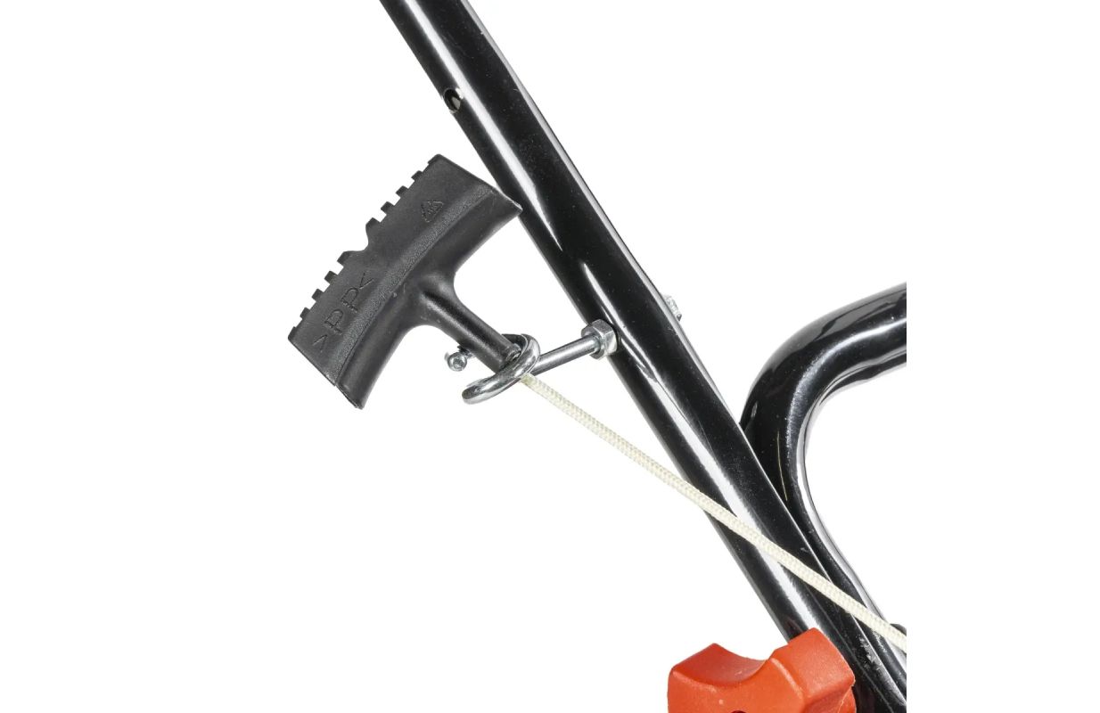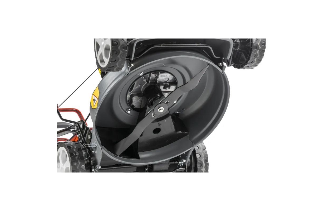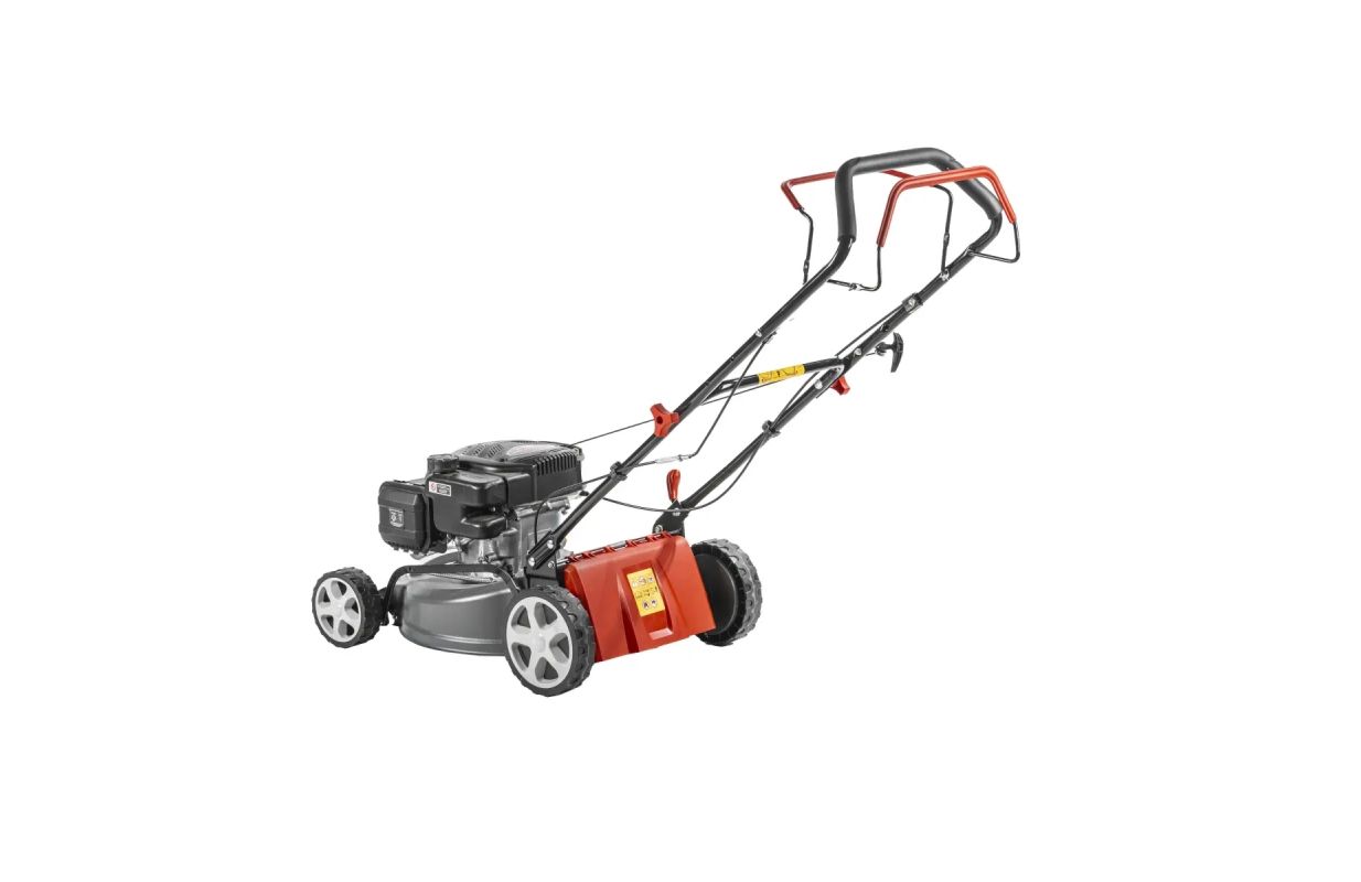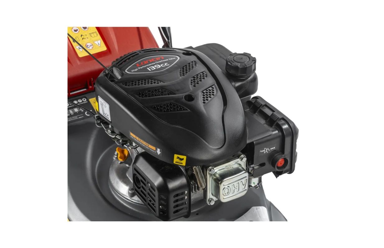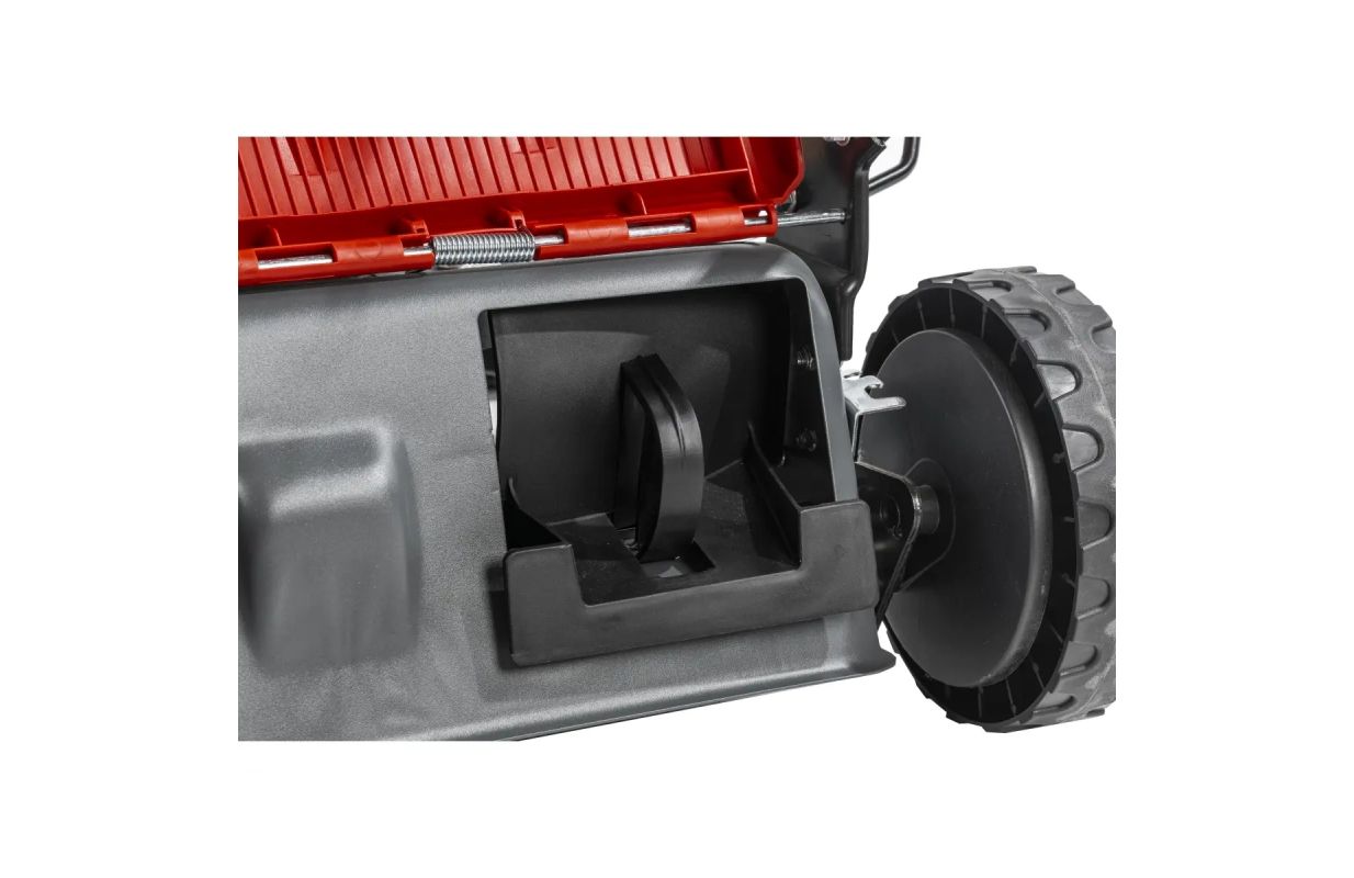 Косилка оснащена мощным двигателем внутреннего сгорания мощностью 2,4 кВт. Двигатель разработан известным производителем LONCIN Позволяет эффективно работать даже при скашивании густой высокой травы. Благодаря ширине кошения 430 мм она идеально подходит для малых и средних садов, где у больших конструкций возникают проблемы с маневрированием. Компактная конструкция и большие колеса облегчают работу и передвижение. Высота среза регулируется по центру в шести положениях (25-75 мм).