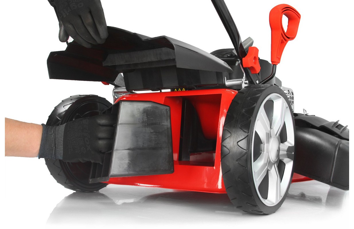 Косилка оснащена большой корзиной емкостью 60 л, отличным аксессуаром, когда мы хотим, чтобы наш газон был идеально чистым.
