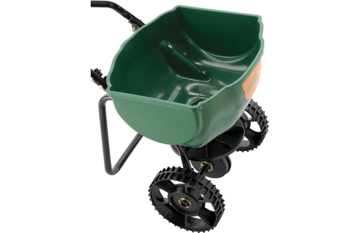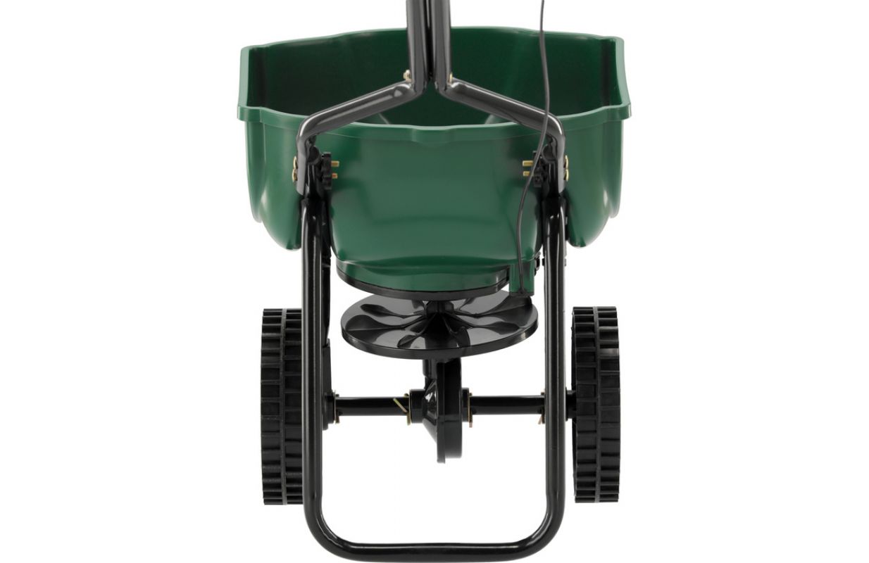 Емкость бака: 15 литров Ширина разбрасывания: 6-8 м Диаметр колеса: 20 см Регулировка дозирования с помощью 15-ступенчатой регулировки