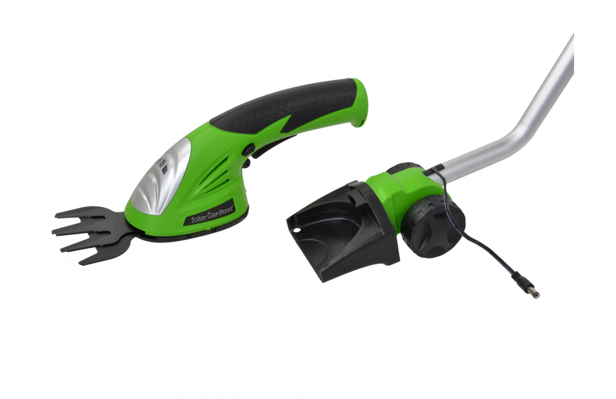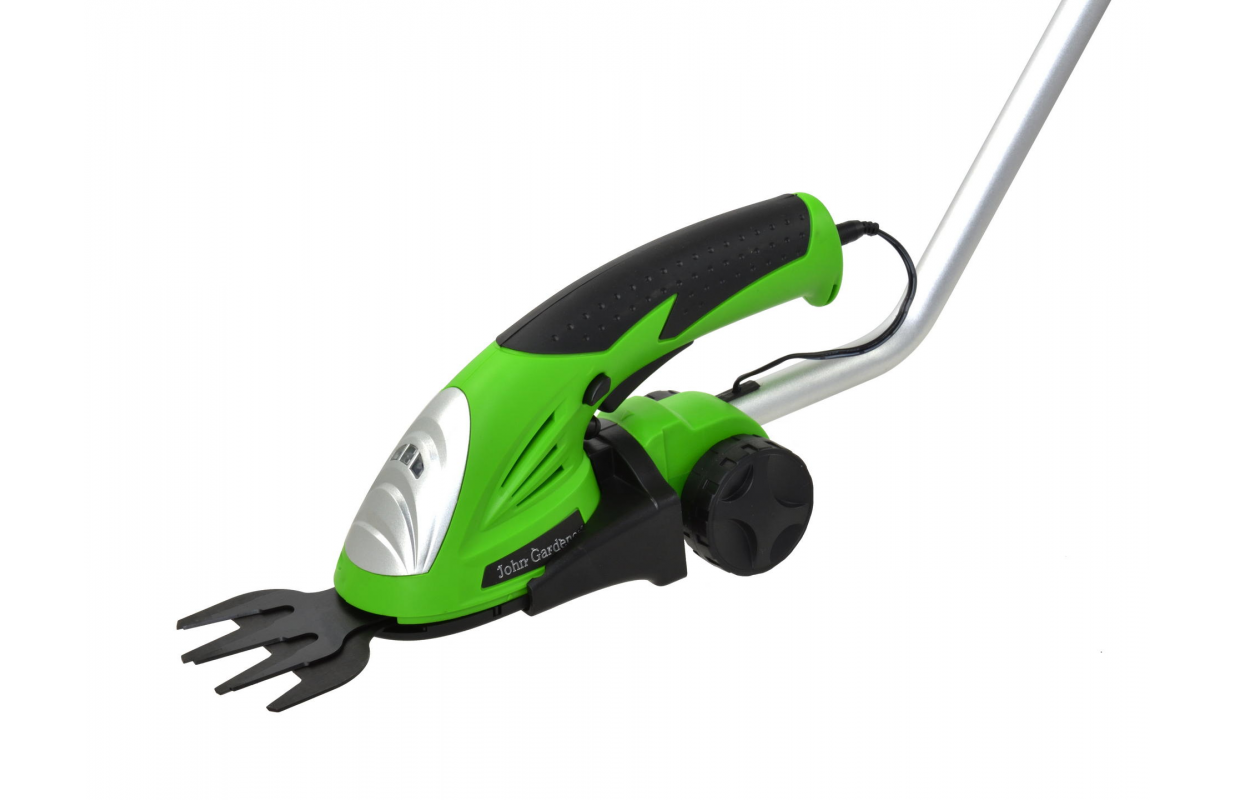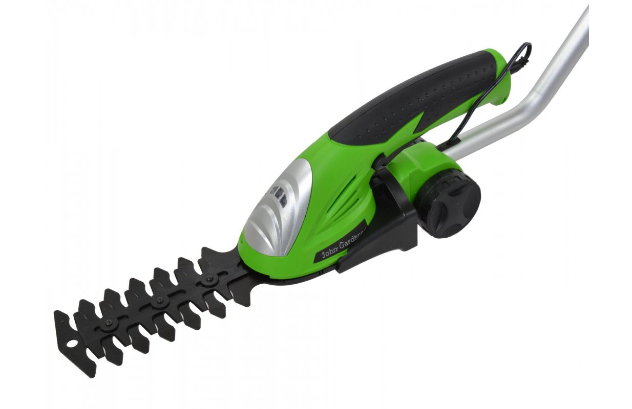 Аккумуляторные ножницы с ручкой 3,6 В, Li-Ion 1,3 Ач от John Gardener. Предназначен для стрижки и обрезки тонких побегов в живых изгородях, кустарниках и декоративных кустарниках. В установленном виде рукоятка идеально подходит для стрижки травы по краям и небольших участков на приусадебных участках.