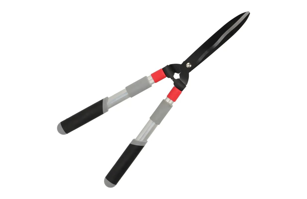 Ножницы для живой изгороди 80A043 предназначены для стрижки или придания формы живой изгороди. Волнистая форма лезвий делает их наиболее подходящими для стрижки туи или еловых изгородей. Специальная форма лезвий не позволяет веткам выскальзывать и застревать во время стрижки.Лезвия изготовлены из прочной стали, дополнительно покрытой тефлоном, который предотвращает застревание и защищает лезвие от коррозии.Телескопические рукоятки ножниц еще больше увеличивают радиус действия и позволяют достать до высоко расположенных побегов или веток. Рукоятка изготовлена из алюминия и имеет удобный хват из двух материалов. Для уменьшения толчков при срезании веток секатор оснащен амортизирующими бамперами.