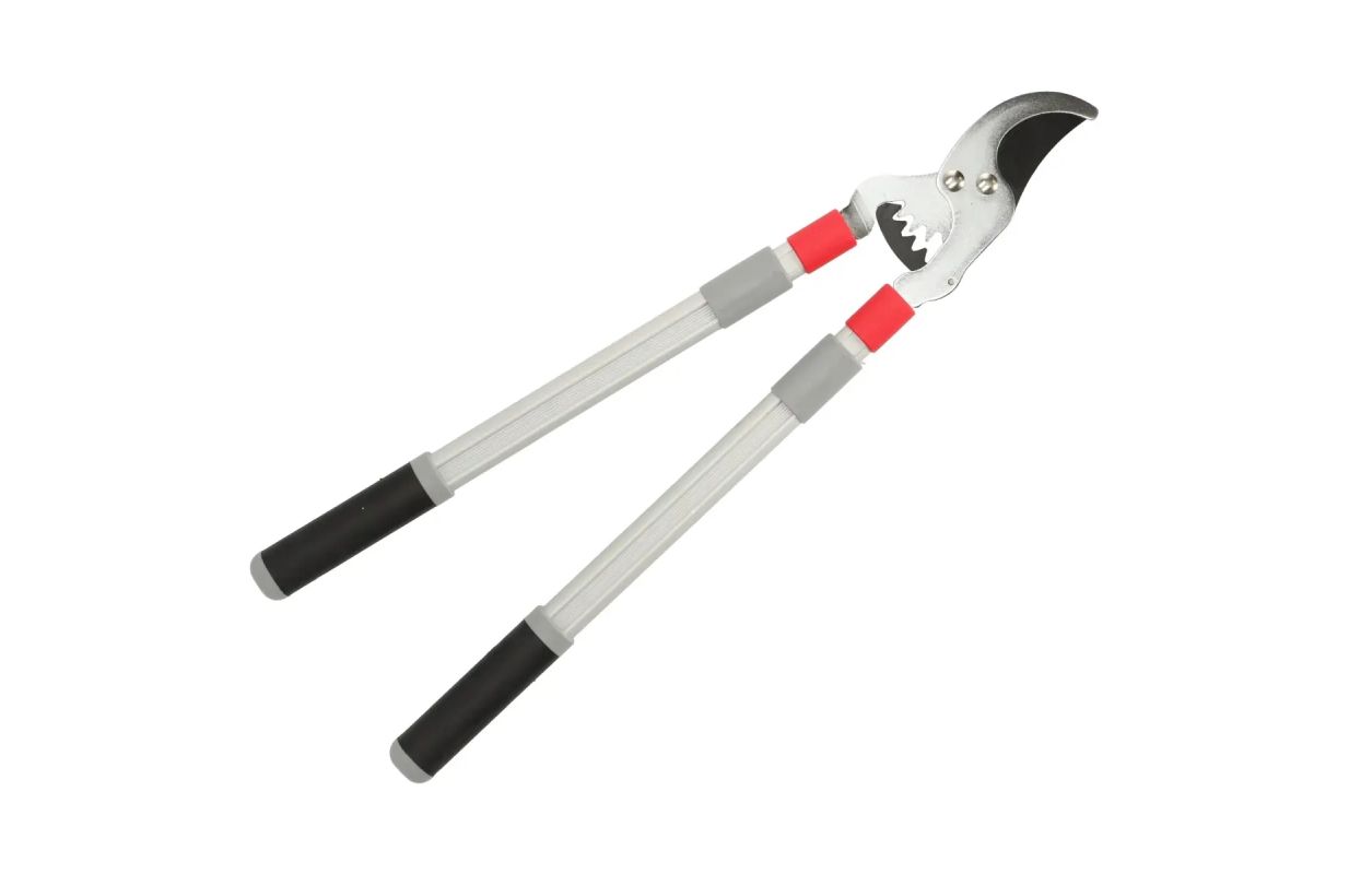 Ножницы 80A022 предназначены для обрезки живых стеблей и ветвей. Телескопические рукоятки секатора увеличивают радиус действия и позволяют достать до высоко расположенных побегов или веток. Лезвие из марганцевой стали (Mn65) имеет тефлоновое покрытие для предотвращения прилипания и защиты лезвия от коррозии. Благодаря прочной зубчатой передаче, увеличивающей мощность, секатор может без усилий срезать ветки диаметром до 35 мм. Алюминиевая рукоятка оснащена удобным хватом из двух материалов.