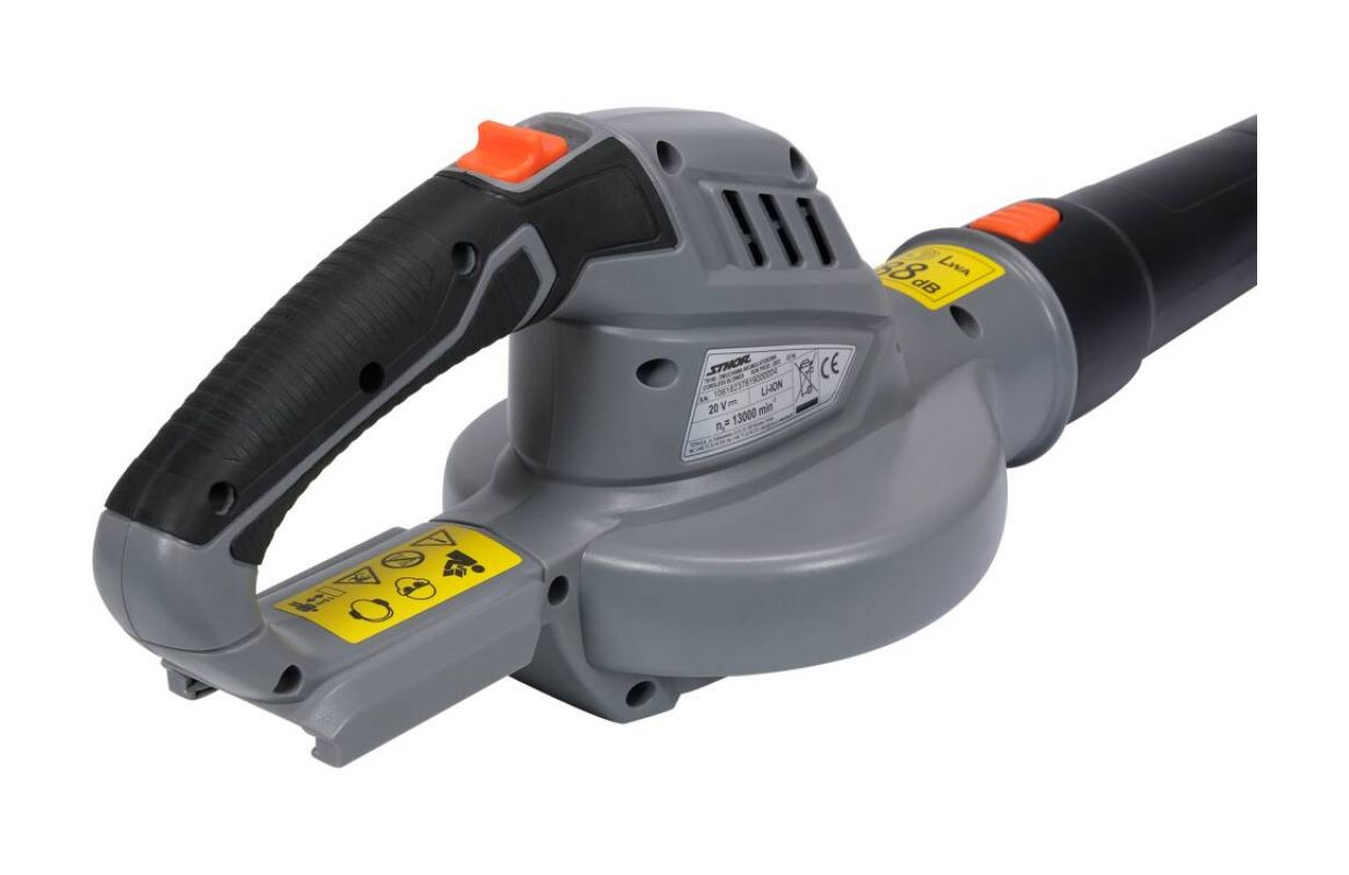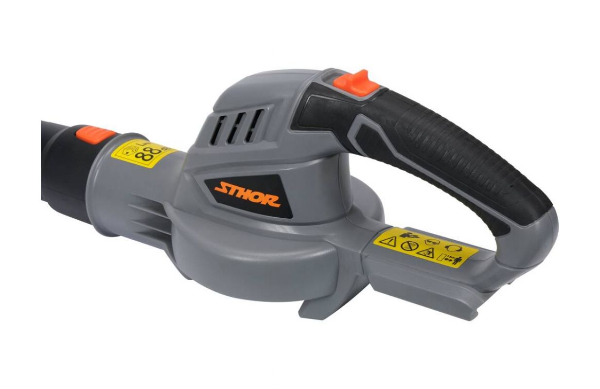 Вентилятор работает от аккумулятора 20 В от платформы Sthor. Предназначен для удаления грязи с подъездных путей, дорожек, гаражей и т.д. Легкая конструкция позволяет использовать воздуходувку одной рукой. Съемная насадка для удобного хранения.