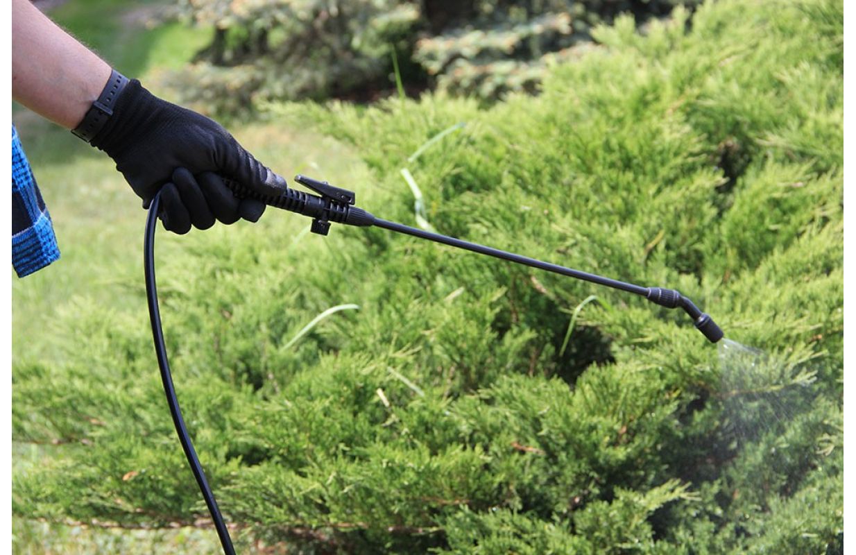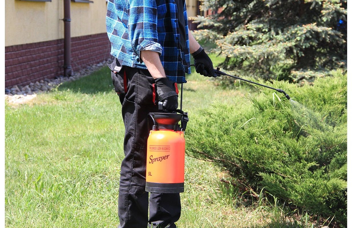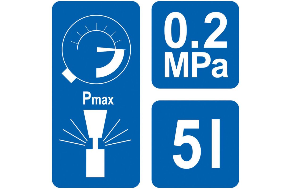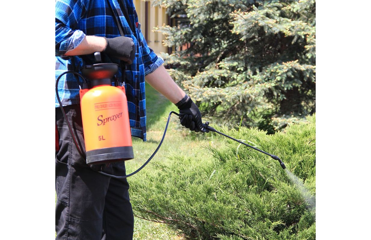 Ручной напорный опрыскиватель с емкостью бака 5л, - Охват эффективного опрыскивания до 3м, - Предохранительный клапан, защищающий от превышения максимально допустимого давления, - Большой ход 25 см обеспечивает быстрое сцеживание, - Ручка для копья общей длиной 56 см с автоматическим распылением и концом с регулируемой шириной и интенсивностью полива, - Гибкий трос длиной 130 см позволяет опрыскивать резервуар, расположенный на земле, - Стабильная простая основа - Чашка для безопасной инфузии путем срыгивания при повторном наполнении. - Два промежуточных места для хранения на копье, - Регулируемый плечевой ремень - По шкале емкости бака в литрах и унциях.