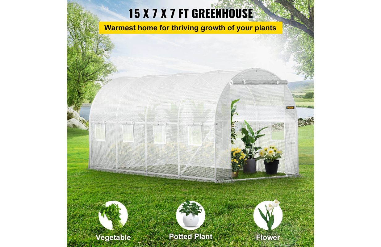 • Теплый дом для растений: Наша теплица 15 x 7 x 7 футов обеспечивает лучшее решение для эффективного выращивания овощей, цветов и создания красивых ландшафтов. Комплект птичника с обручами защищает растения от холода, мороза и града зимой; Он создает лучшую среду, увеличивая поток воздуха летом.