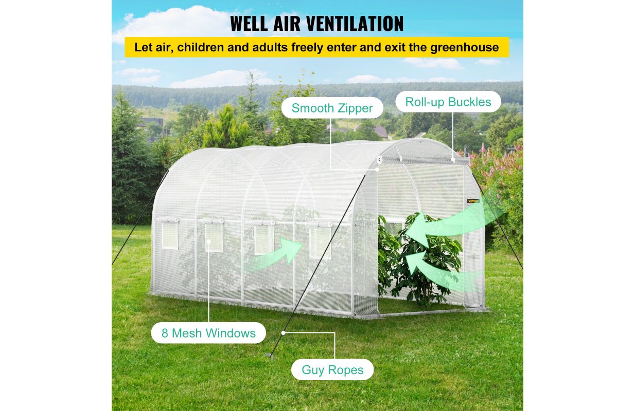• Отличная вентиляция воздуха: Благодаря 8 сетчатым окнам наша туннельная теплица может предотвратить небольшие «неприятности» и увеличить перекрестную вентиляцию и воздушный поток. Кроме того, у нас есть откидная дверь на молнии, чтобы воздух мог свободно входить и выходить. Следите за тем, чтобы в вашем помещении не было мусора, и убедитесь, что каждый ваш вдох запомнится надолго.