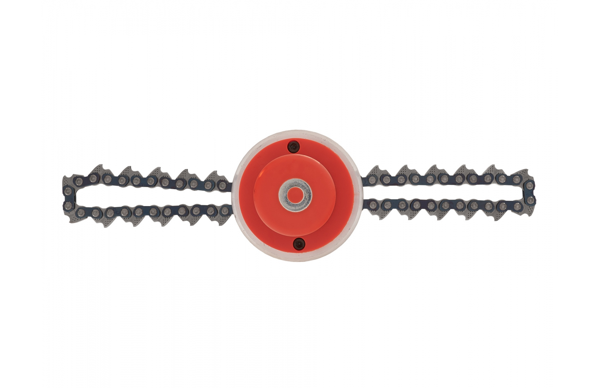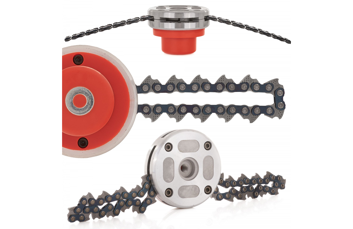 Усиленная головка цепи для бензинового триммера. Предназначенный для работы в труднопроходимой местности, он отлично справится с густой травой, кустарниками и т.д., справится там, где стандартная триммерная головка не сработает.