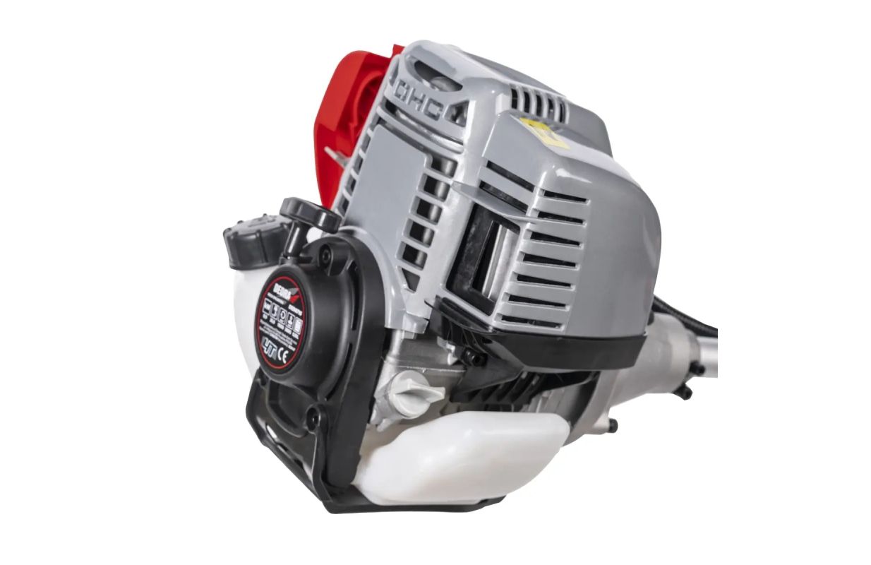 Коса работает от четырехтактного двигателя внутреннего сгорания мощностью 0,9кВт. Использование четырехтактного двигателя обеспечивает высокую культуру эксплуатации, снижает уровень шума по сравнению с классическими двухтактными двигателями и исключает необходимость приготовления топливной смеси, что означает простоту использования косы. Кроме того, четырехтактный двигатель характеризуется гораздо более легким запуском даже при холодном двигателе.