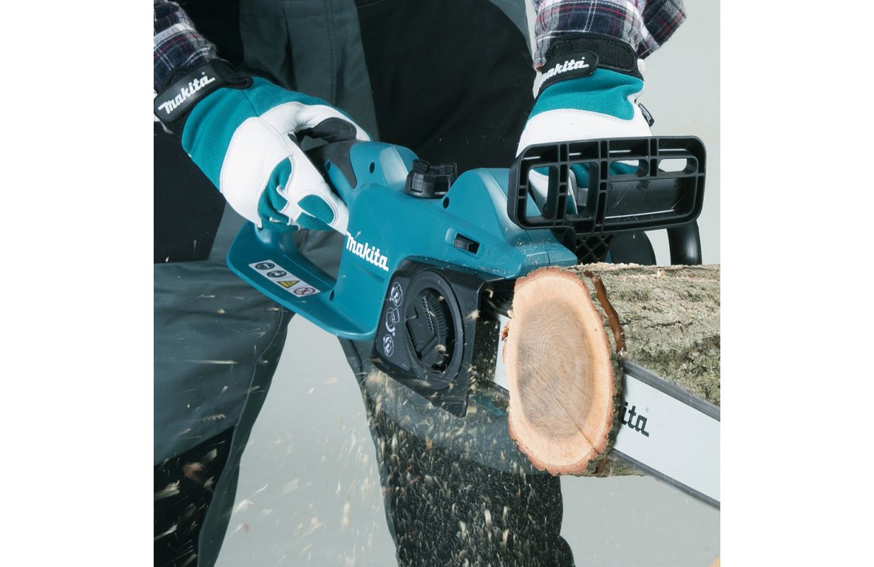 Электрическая цепная пила Makita UC3041A мощностью 1800 Вт применяется для распиливания бревен и пиломатериала. Не выделяет вредных выхлопов, что позволяет пользоваться инструментом в помещении. Модель имеет автоматическую систему смазки цепи, инерционный тормоз и уловитель цепи. Предусмотрена защита от непреднамеренного включения, защита руки от удара цепью.