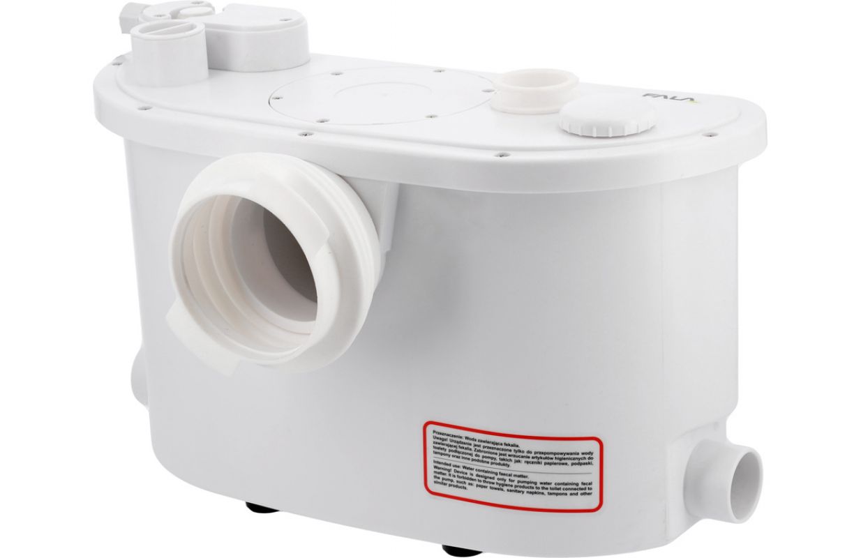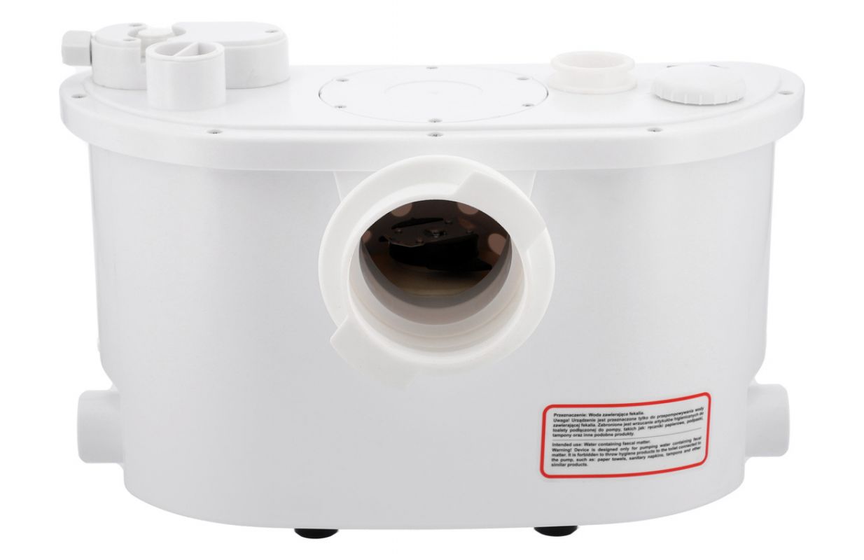 Эффективный санитарный насос с кофемолкой, оснащенный тихим двигателем мощностью 400 Вт. Насос работает в автоматическом режиме, управляется поплавковым выключателем. Кроме того, пользователь может запустить двигатель вручную с помощью кнопки. Смотровое окно обеспечивает доступ к контейнеру насоса.