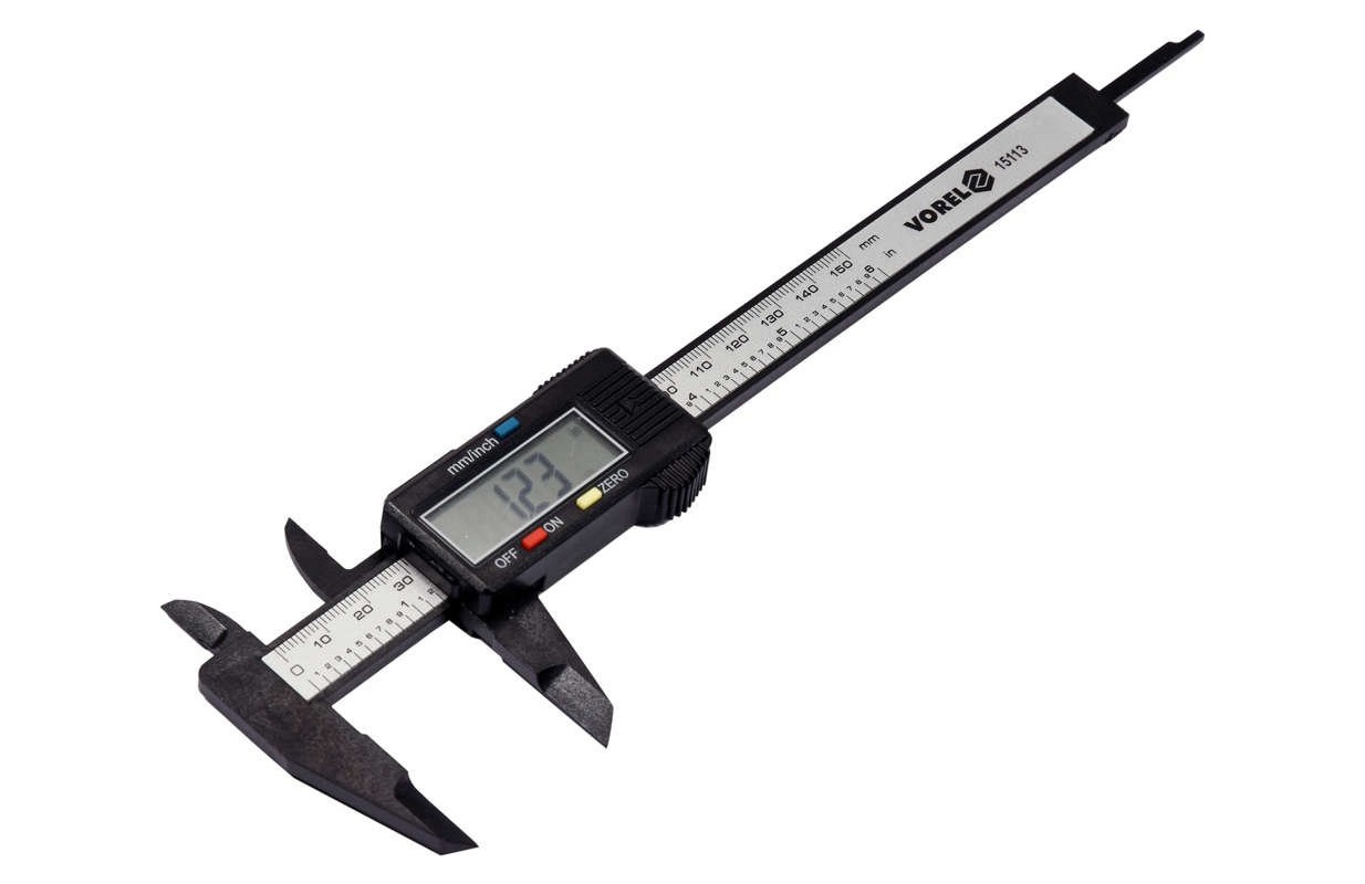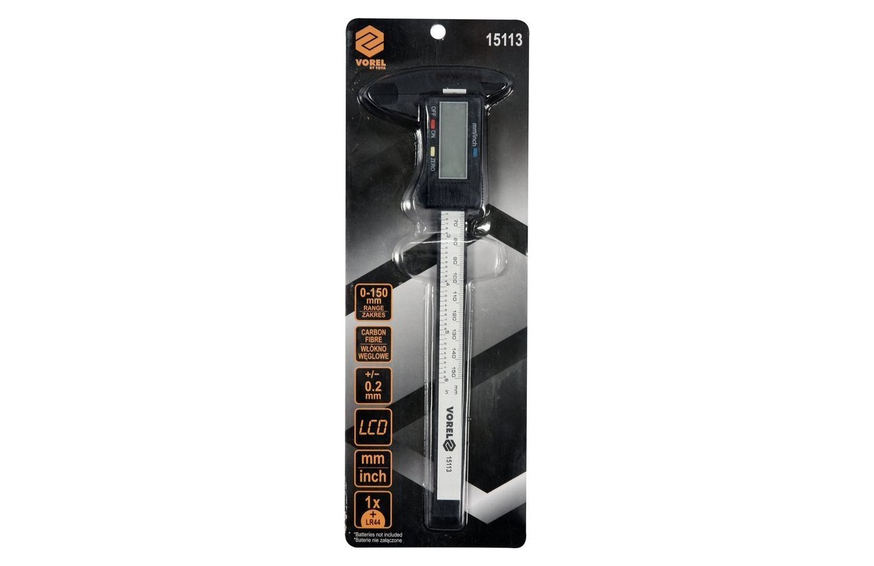 Электронный штангенциркуль 150 мм. Чрезвычайно легкий. Измерительная планка и губки изготовлены из углеродного волокна / так называемого углеродного волокна / Диапазон измерения 150 мм, измерение в мм или дюймах, разрешение 0,1 мм, точность 0,01 мм. Чтение результатов на ЖК-экране. Питание от батареек sr44/lr44 1.5v или cr2032 3v.