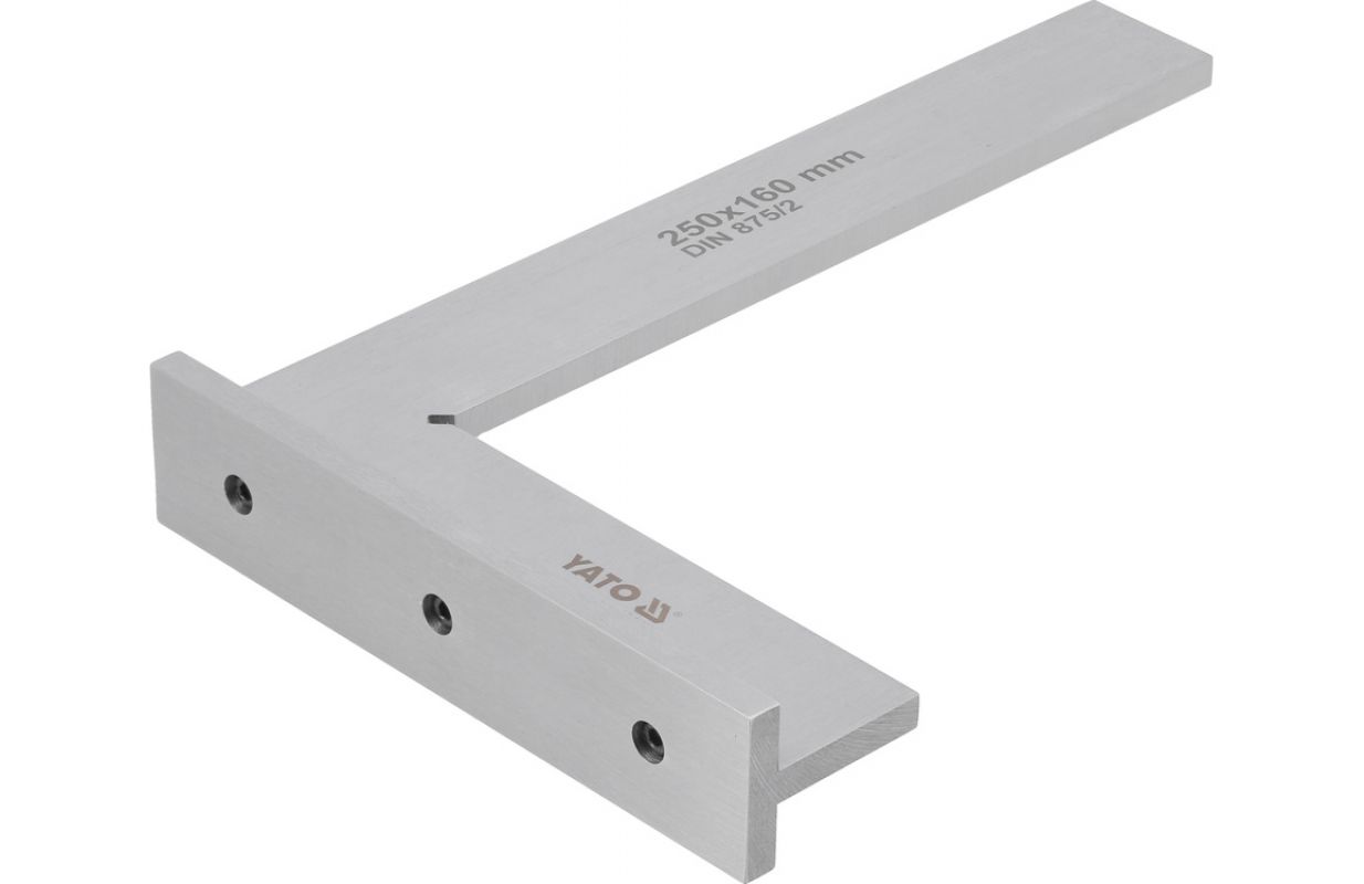 основная полоса из углеродистой стали C45 в соответствии с DIN 875/II поверхность отшлифованная и полированная Диапазон измеряемых углов: 90° ножка соединена с полосой двумя винтами