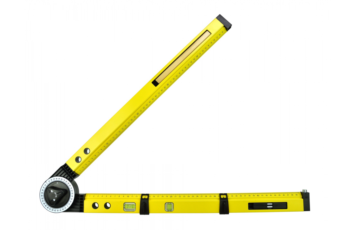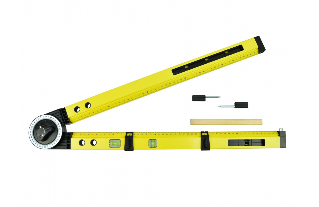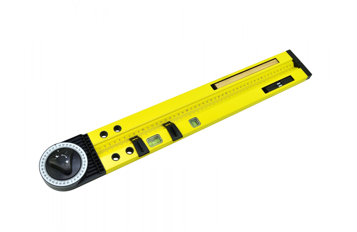 Транспортир с регулировкой уровня 3в1. Прибор имеет транспортир с диапазоном измерения от 0° до 270°, спиртовые уровни длиной 50 см, два флакона для измерения вертикального и горизонтального отклонения.