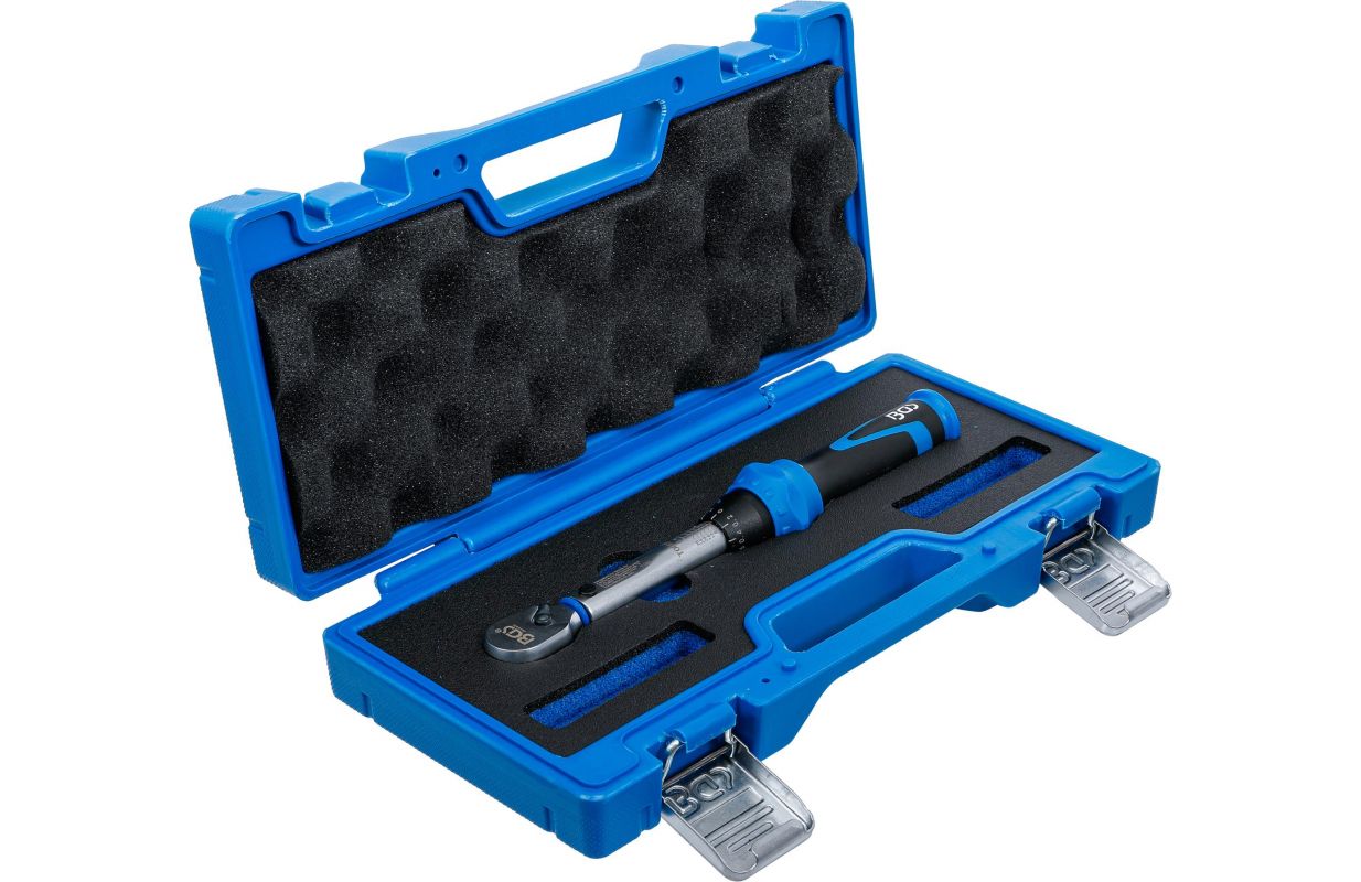 Описание подходит для затяжки по крутящему моменту для резьбовых соединений с правой резьбой Встроенная реверсивная трещотка с закрытой узкой головкой Храповой механизм, реверсивный мелкий зуб, 72 зуба Простое запирание и отпирание на ручке Лазерная шкала линий с точной регулировкой соответствующего значения настройки Оптимально спроектированная пластиковая рукоятка для легкой настройки желаемого значения крутящего момента, а также надежный захват рукоятки инструмента отчетливо слышимый выпуск Инструмент защищен в лотке из твердого пенопласта и уложен в углубление нескользящим образом Безопасное и аккуратное хранение в футляре для выдувной формы вкл. сертификат калибровки мелкая шкала: 0,2 Нм Триггер по часовой стрелке: Да Технические данные Размер профиля привода, метрический 6,3 мм Размер профиля привода, дюйм 1/4" Выходной профиль Внешний квадрат Длина 250 мм Вес брутто 894 г Максимальный крутящий момент 30 Нм Минимальный крутящий момент 6 Нм Нет. зубьев в головке трещотки 72 Точность выпуска +/- 3 %