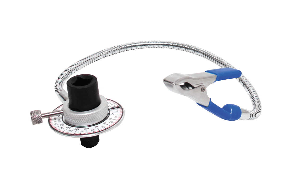 Угломер для затяжки болтов – специальный диагностический инструмент необходимый для контроля угла затяжки крепежа, который требует строгих технологических норм и правил. Например, в автомобильной сфере ключ угломер используется для выставления угла затяжки болтов для крышки головки блока цилиндров.