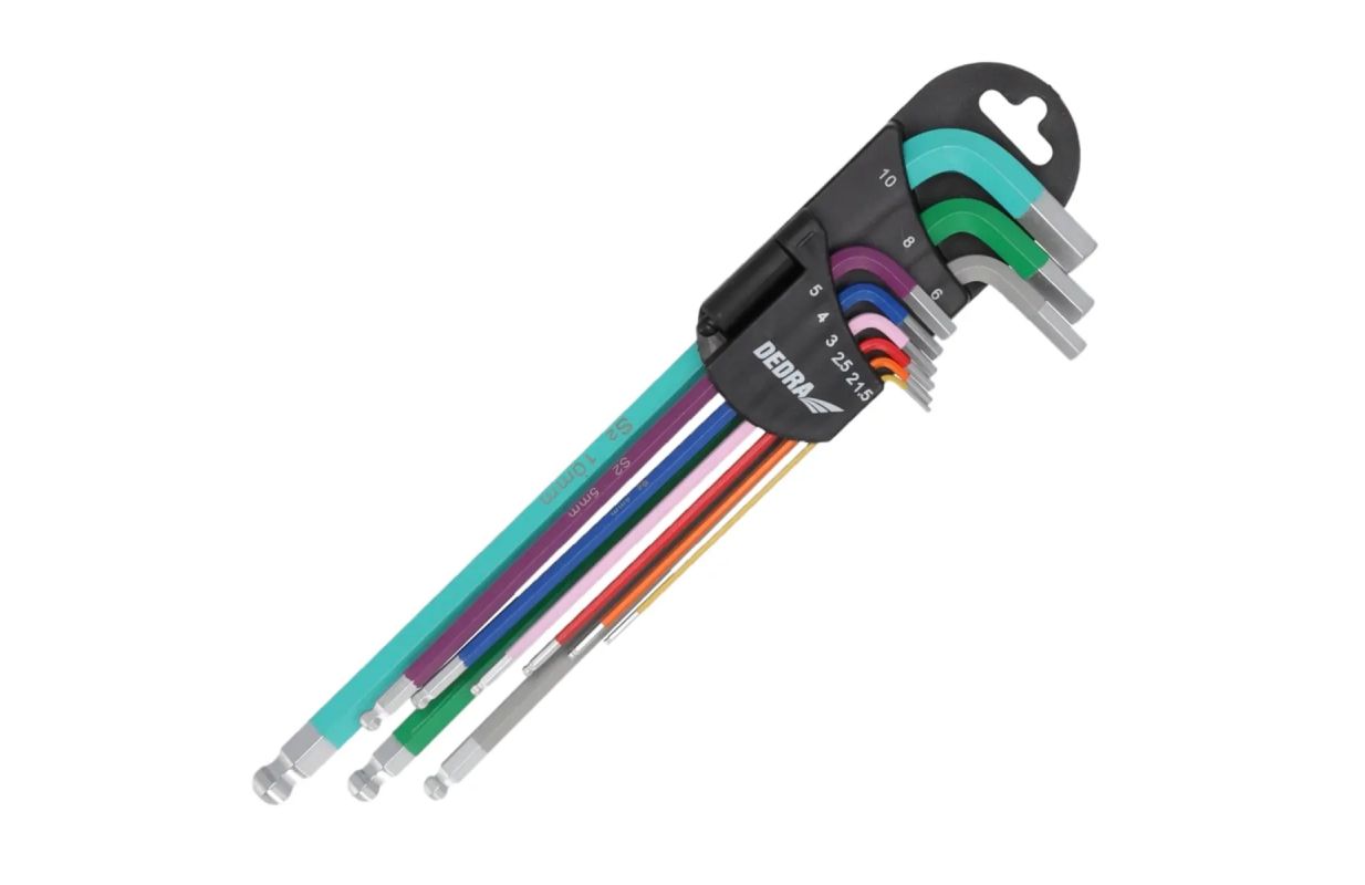 Набор из 9шт шестигранных гаечных ключей с шариком сверхдлинных DEDRA 06F215 набор из 9шт, цвет 1.5-10мм, S2 (06F215)