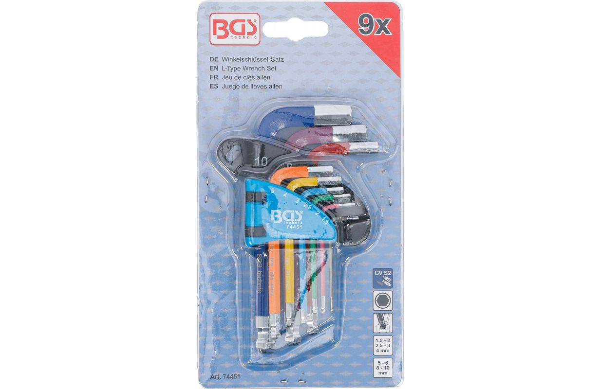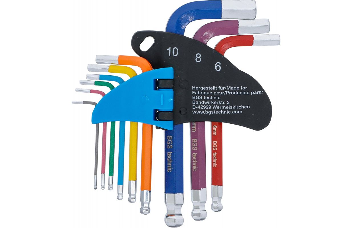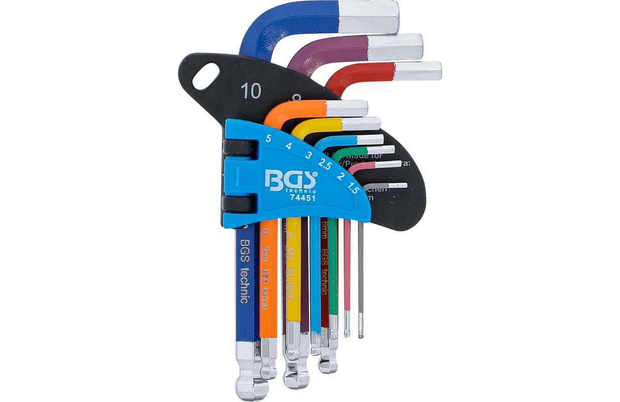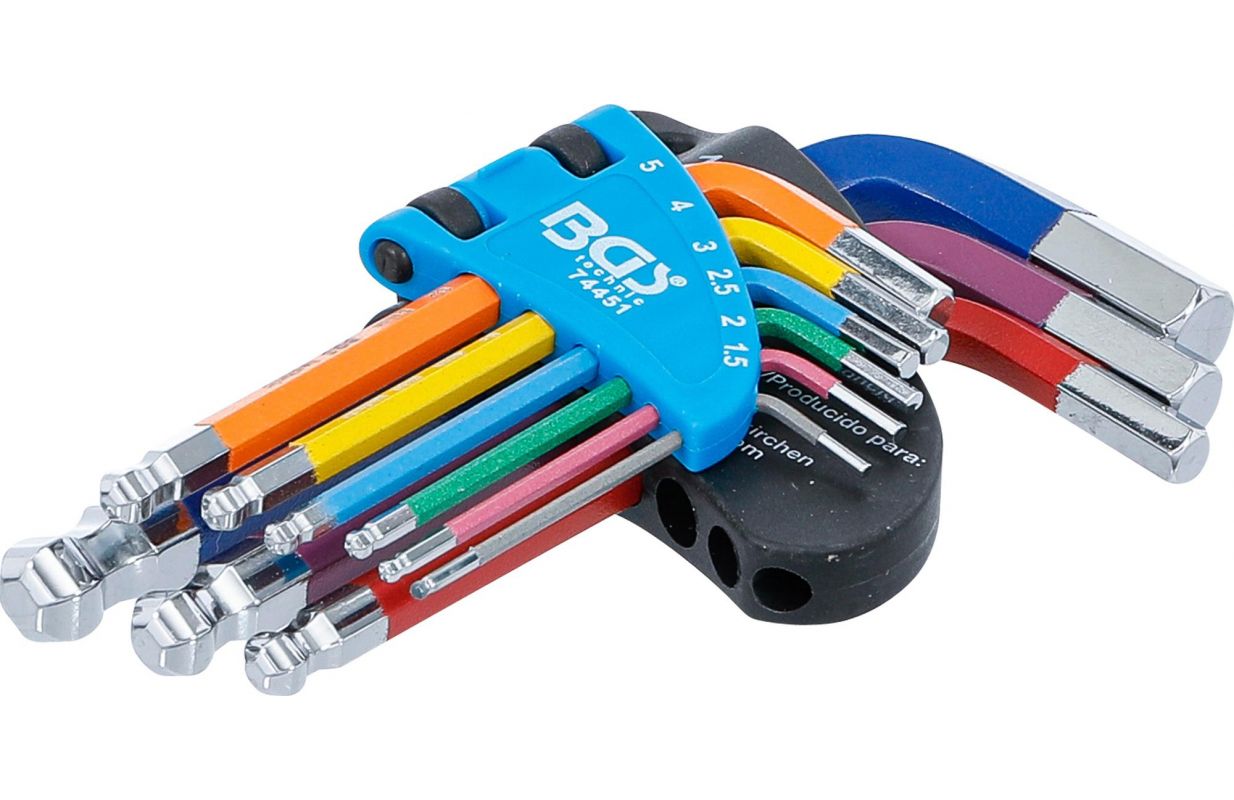 Набор гаечных ключей L-образного типа | разноцветный | короткая | Шестигранник | с шаровой головкой 1,5 - 10 мм | 9 шт. (74451Б)