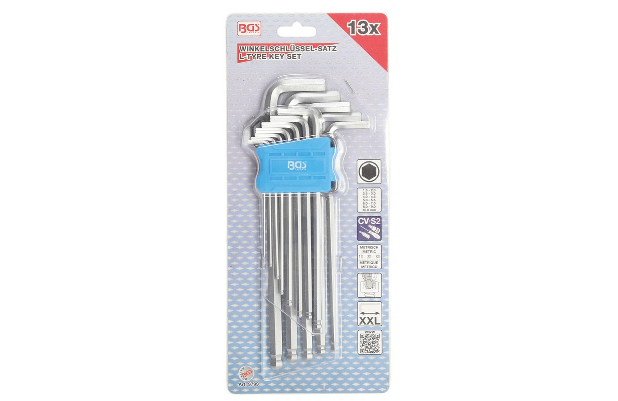 Ключ L-образный внутренний шестигранник / внутренний шестигранник с шариковой головкой 10 мм, длина 230 мм