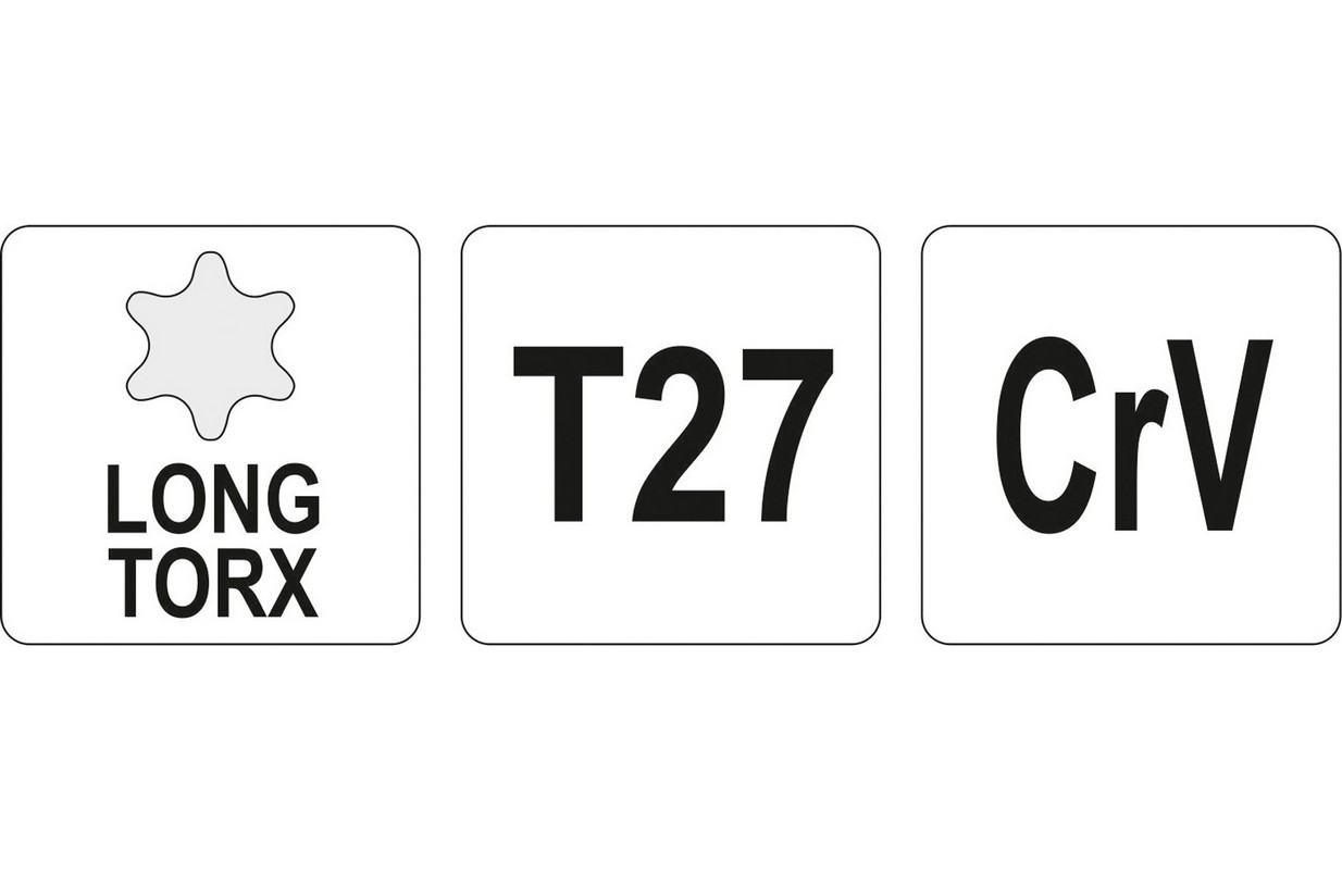Прочный шпиндель для винтов и шурупов с внутренним шестигранником torx от YATO YT-05498. Используется, в частности, в автомобильных мастерских и сервисах, а также в мебели. Изготовлен из хром-ванадиевой стали.