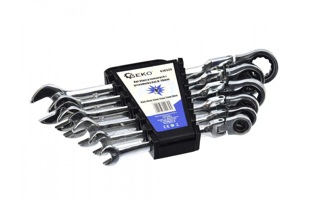 Набор шарнирных ключей с трещоткой CrV 6el. 8-19 мм