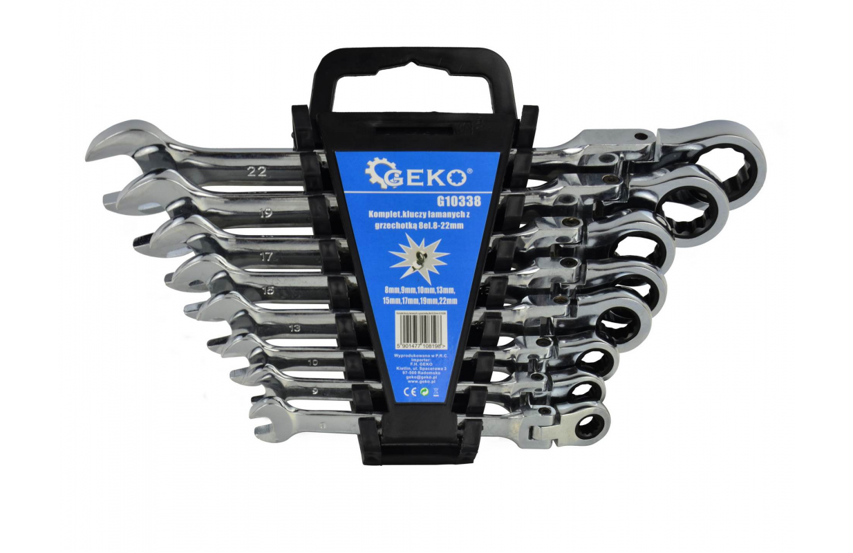 Набор комбинированных ключей с трещоткой (72-зубчатый механизм) 8-22 мм из прочной хромованадиевой стали (CrV). Их можно использовать как в профессиональных автомастерских, так и в домашнем гараже. Ключи помещаются в пластиковый футляр, который можно повесить на стену.