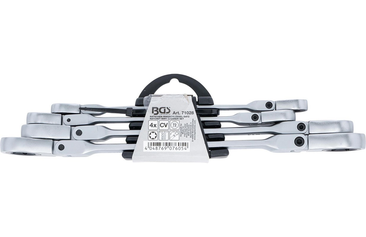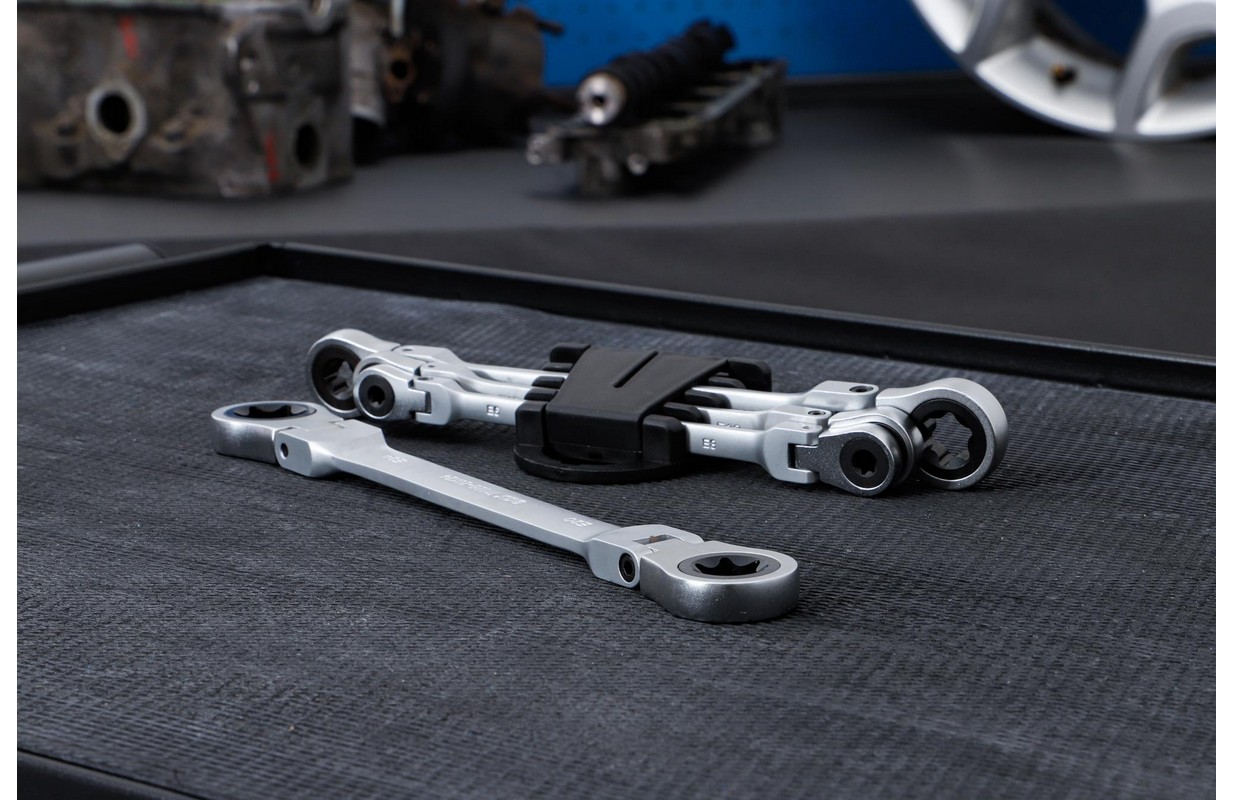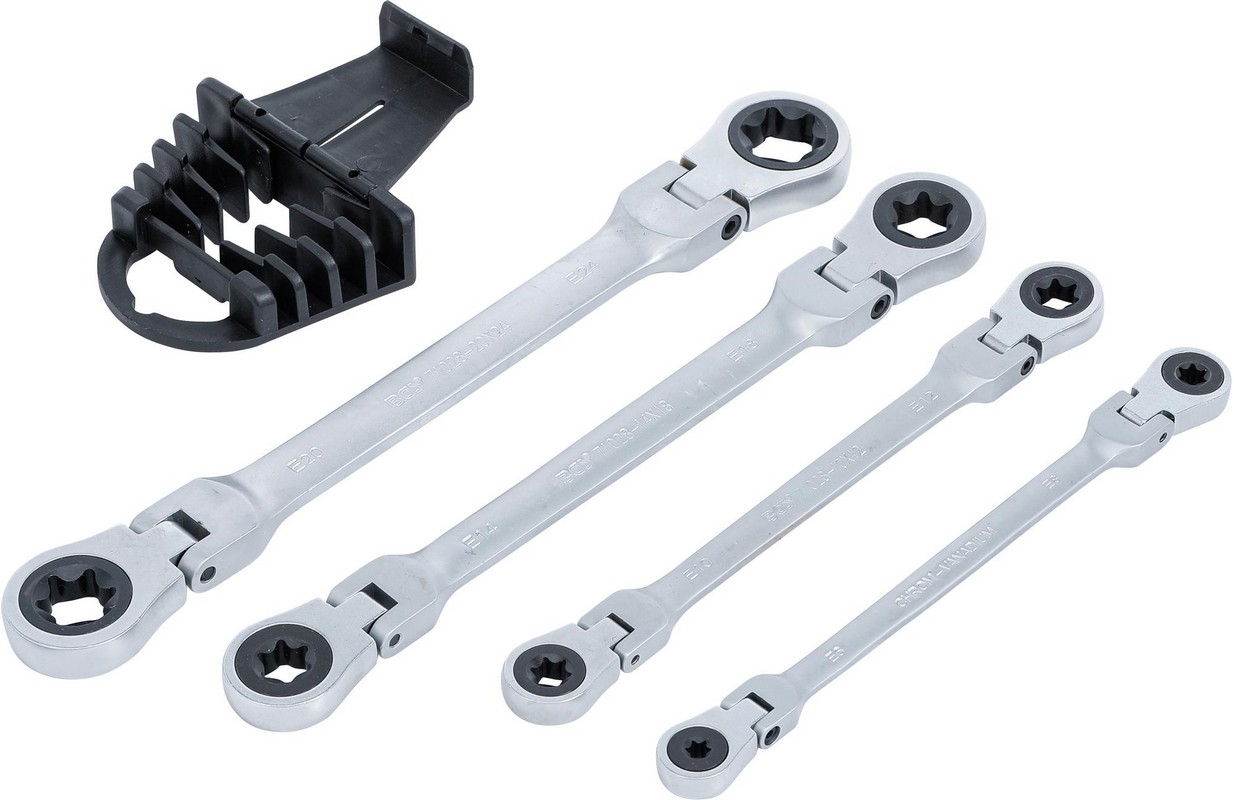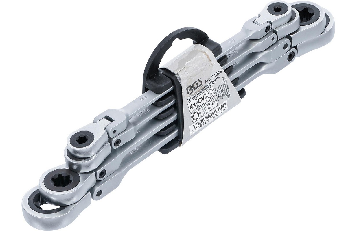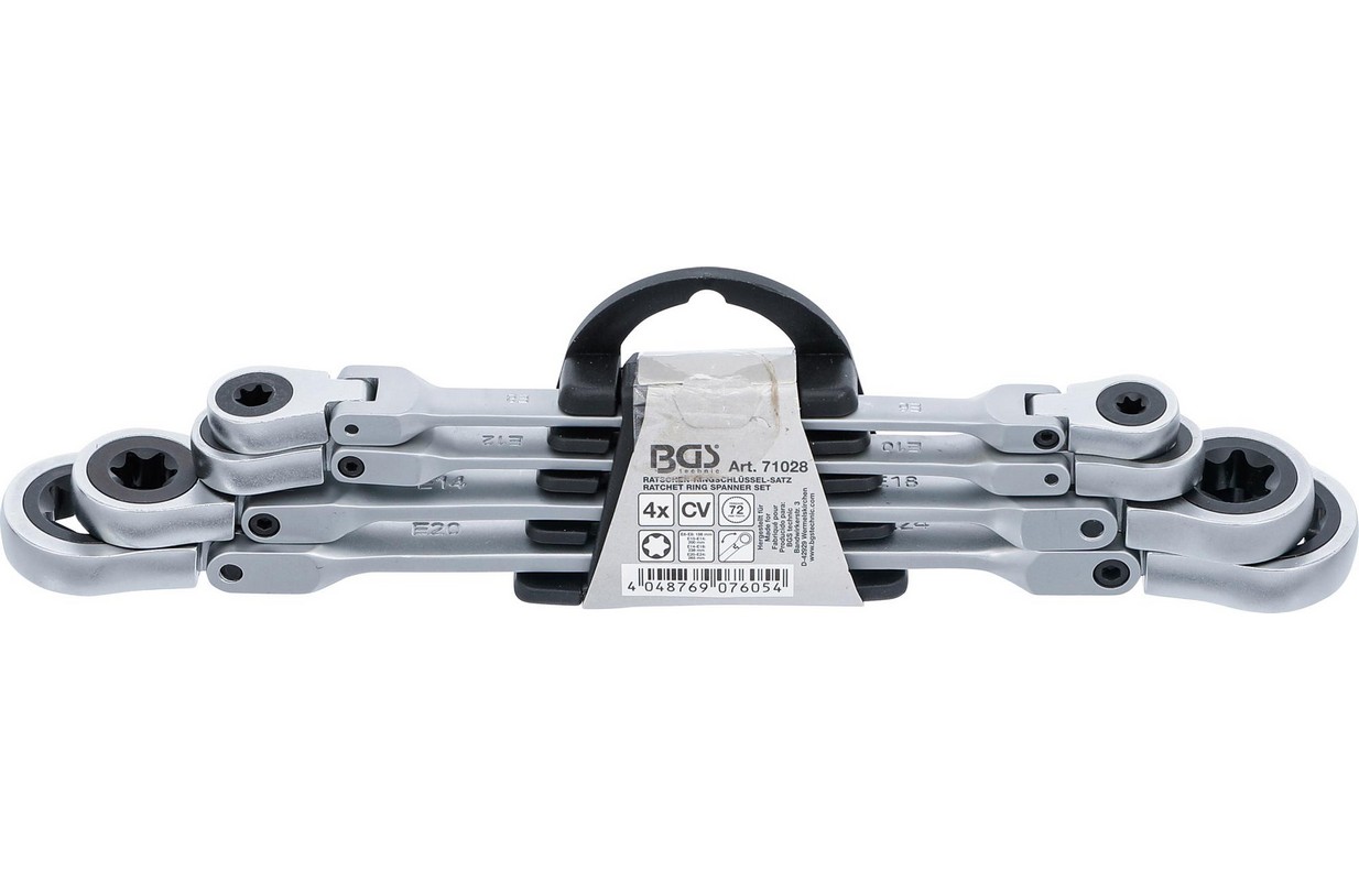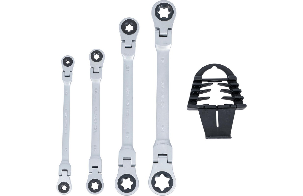Набор гаечных ключей с двумя трещотками | регулируемый | с кольцевыми головками E-типа | E6 - E24 | 4 шт. (71028)