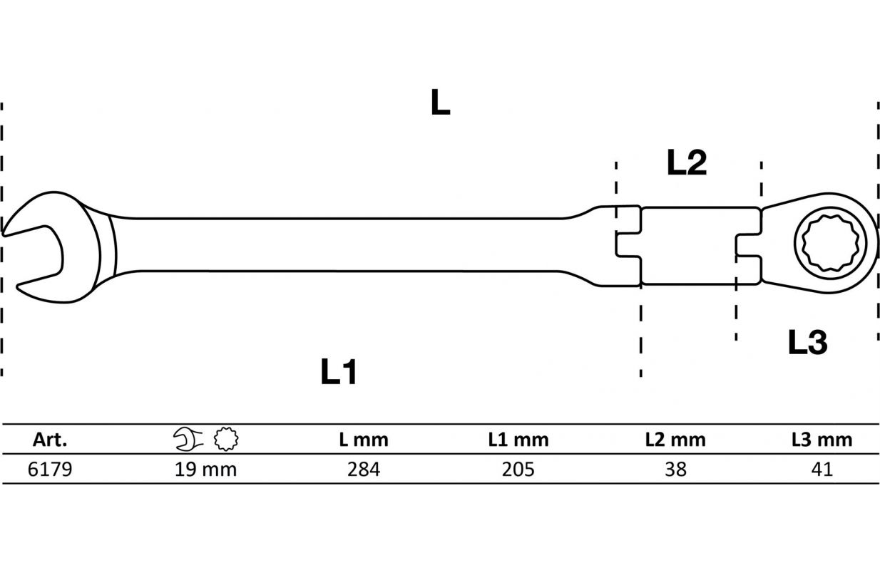 Комбинированный гаечный ключ с торцевой головкой | двойной шарнир | 19 мм (6179)