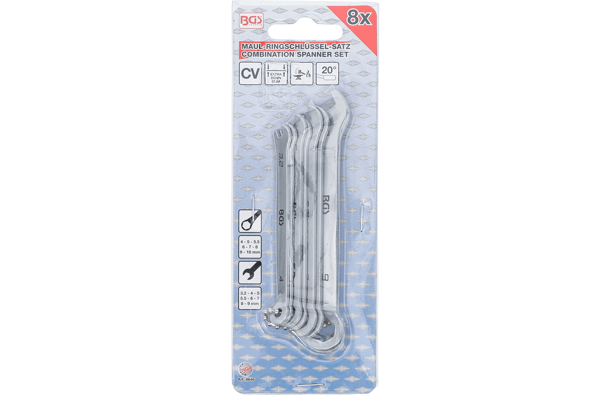 Набор комбинированных ключей в небольшом количестве 8 шт., 4-10 мм (8646)