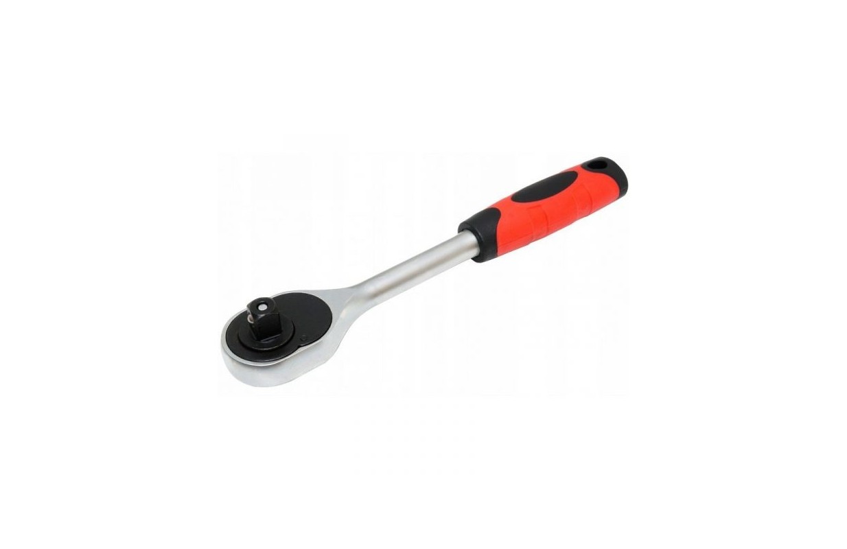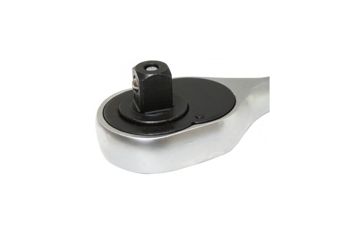 • Трещотка 1/2 ''. Рукоять изготовлена из хромованадиевой легированной стали. Высокая эргономичность при работе достигается за счет пластиковой рамки ручки. Ручка была специально профилирована в передней части держателя, благодаря чему она надежно лежит в руке. Поверхность хромированная, полированная.