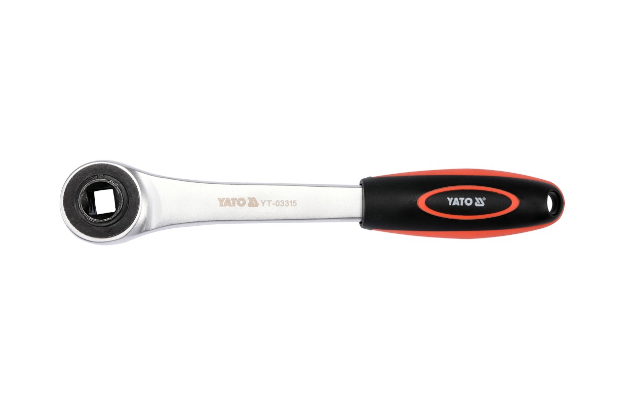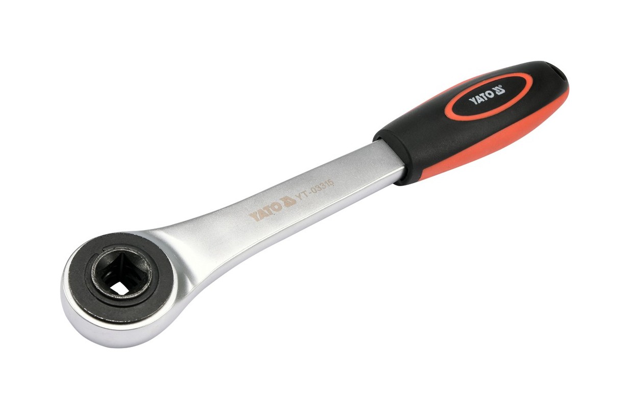 Трещотка из высококачественной стали CRV имеет храповой механизм с 30 зубьями прочной и долговечной конструкции. Проходная конструкция 1/2" позволяет изменять направление работы, поворачиваясь на 180°. Нескользящая эргономичная рукоятка повышает комфорт работы. Внутренний храповик YT-03315, используемый вместе со ступенчатым ключом YT-03316, используется для монтаж: