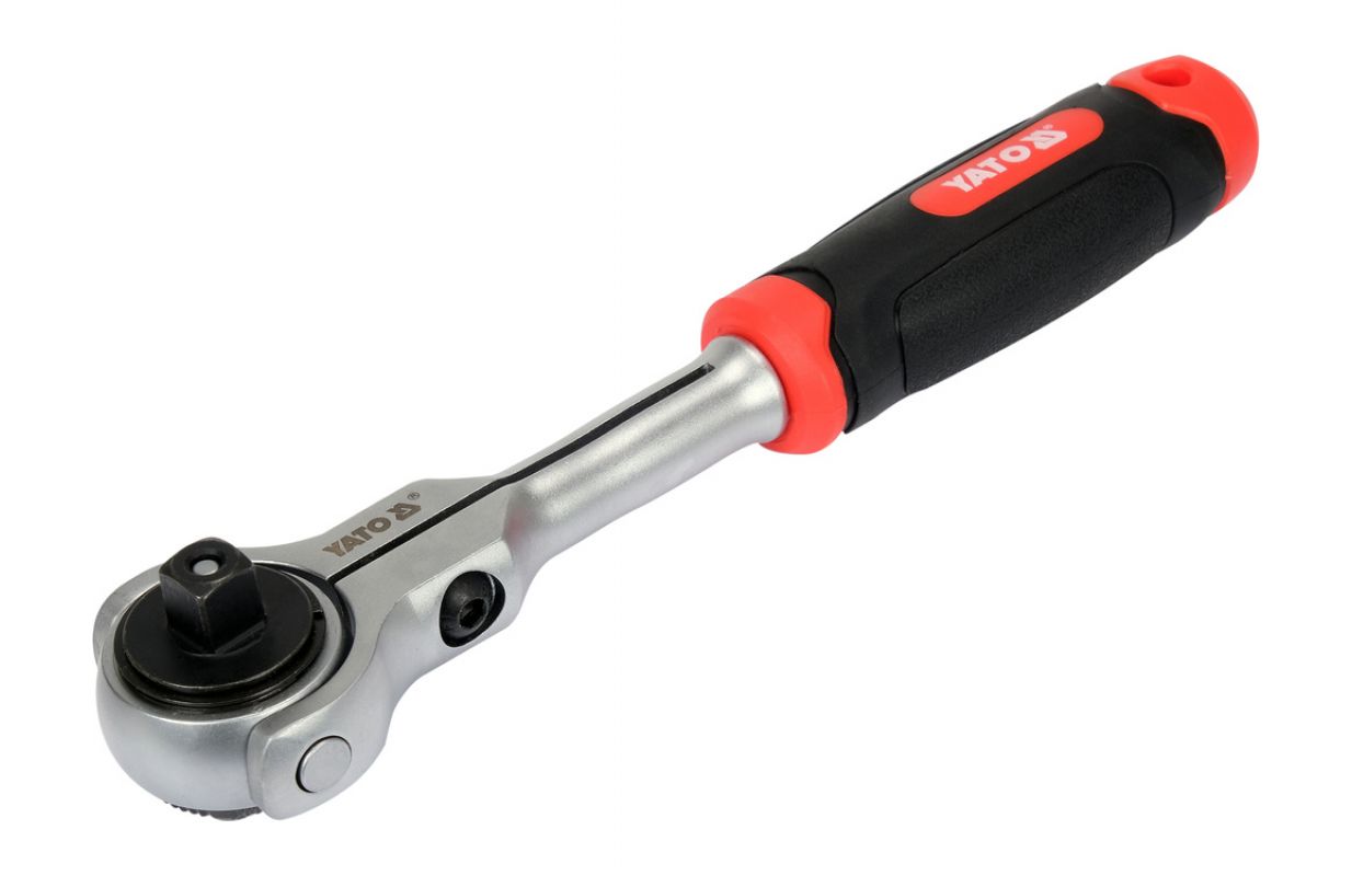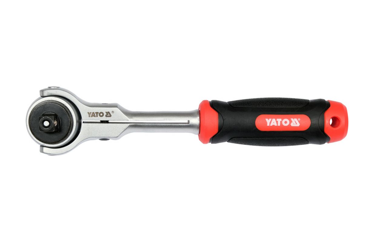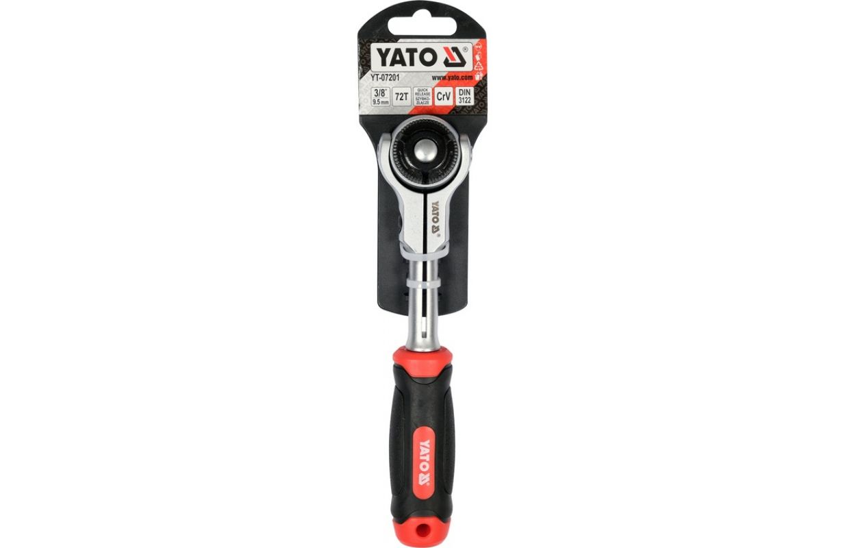 YT-07201 ТРЕЩОТКА С ПОВОРОТНОЙ ГОЛОВКОЙ 3/8" Клеймо Ято Символ YT-07201 Размер рукоятки инструмента 9,5 мм (3/8 дюйма) Длина 195 мм Материал 40CrV Обработка поверхности Хром, Сатин Материал ручки ПП, ТПР ШУМ 3122 Количество зубьев 72 Переключатель заднего хода да Поворотная головка да Сустав да Ручка прямой