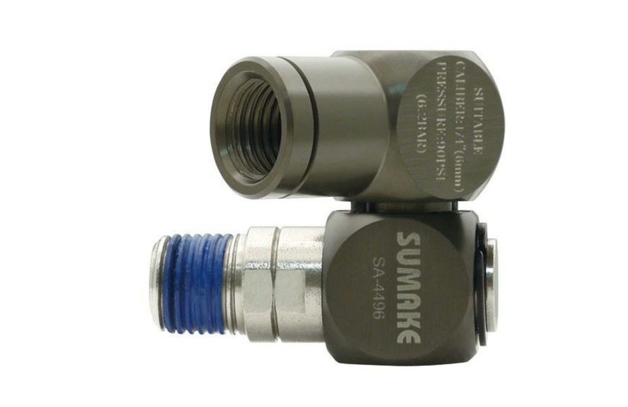 Шарнир для пневматического шланга с возможностью поворота в диапазоне 360 градусов предотвращает перегибы кабеля, повышая комфорт работы с помощью пневматических инструментов
