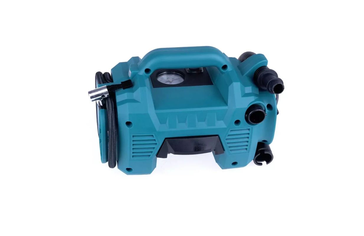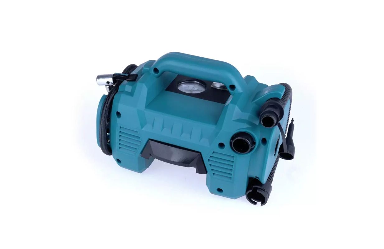 Это устройство предназначено для накачивания колес, мячей, матрасов. Рабочее давление 10BAR и расход воздуха 235л/мин делают компрессор очень эффективным. Встроенный манометр позволит вам контролировать рабочее давление устройства. В комплект компрессора входит набор из четырех насадок и дополнительный шланг, с помощью которых вы легко сможете не только надуть, но и откачать воздух, например, из матрасов или бассейнов.