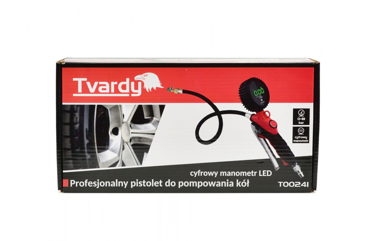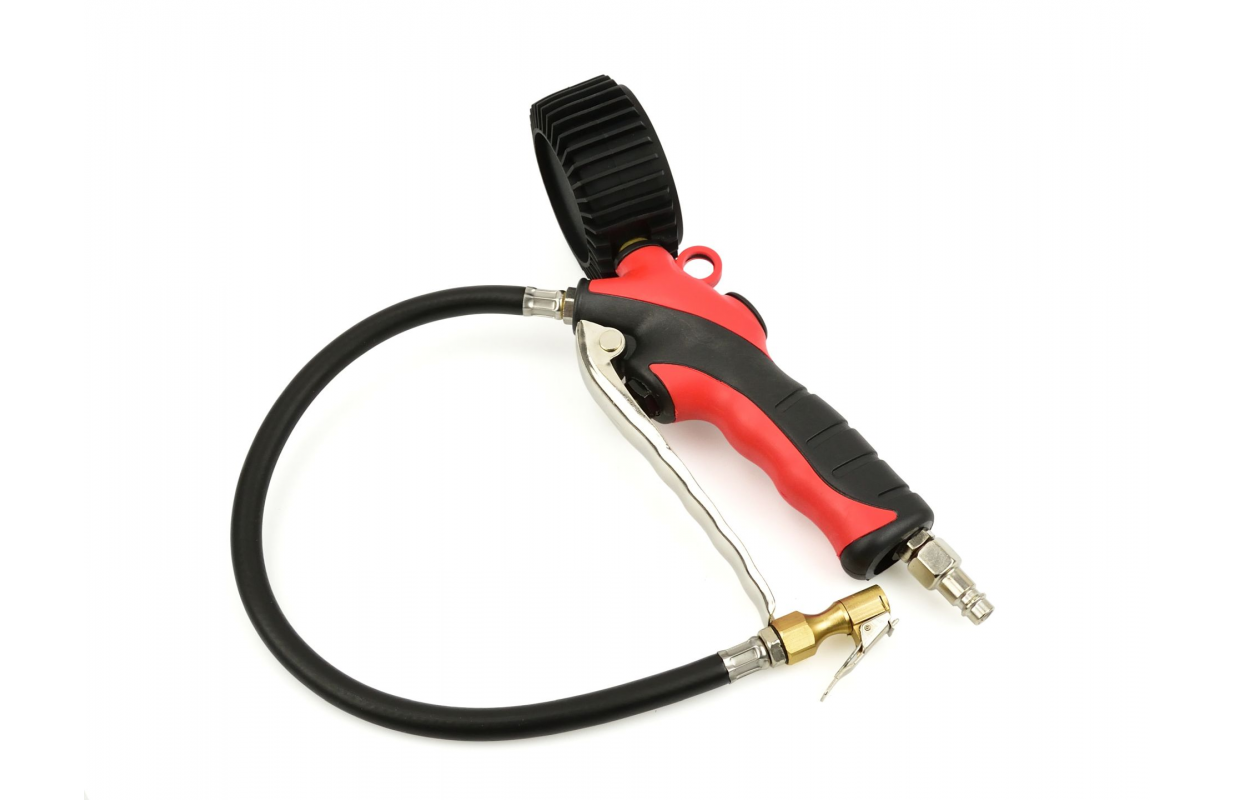 Профессиональный пневматический пистолет с жидкокристаллическим манометром - для накачки колес легковых и грузовых автомобилей. Оснащен гибким шлангом длиной 45 см и большим читаемым манометром с ЖК-дисплеем в резиновой крышке, защищающей от ударов и ударов. Шкала измерения в четырех единицах – psi, Bar, kPa, кг/см2. Быстроразъемный разъем 1/4 дюйма обеспечивает быстрое подключение к компрессору.