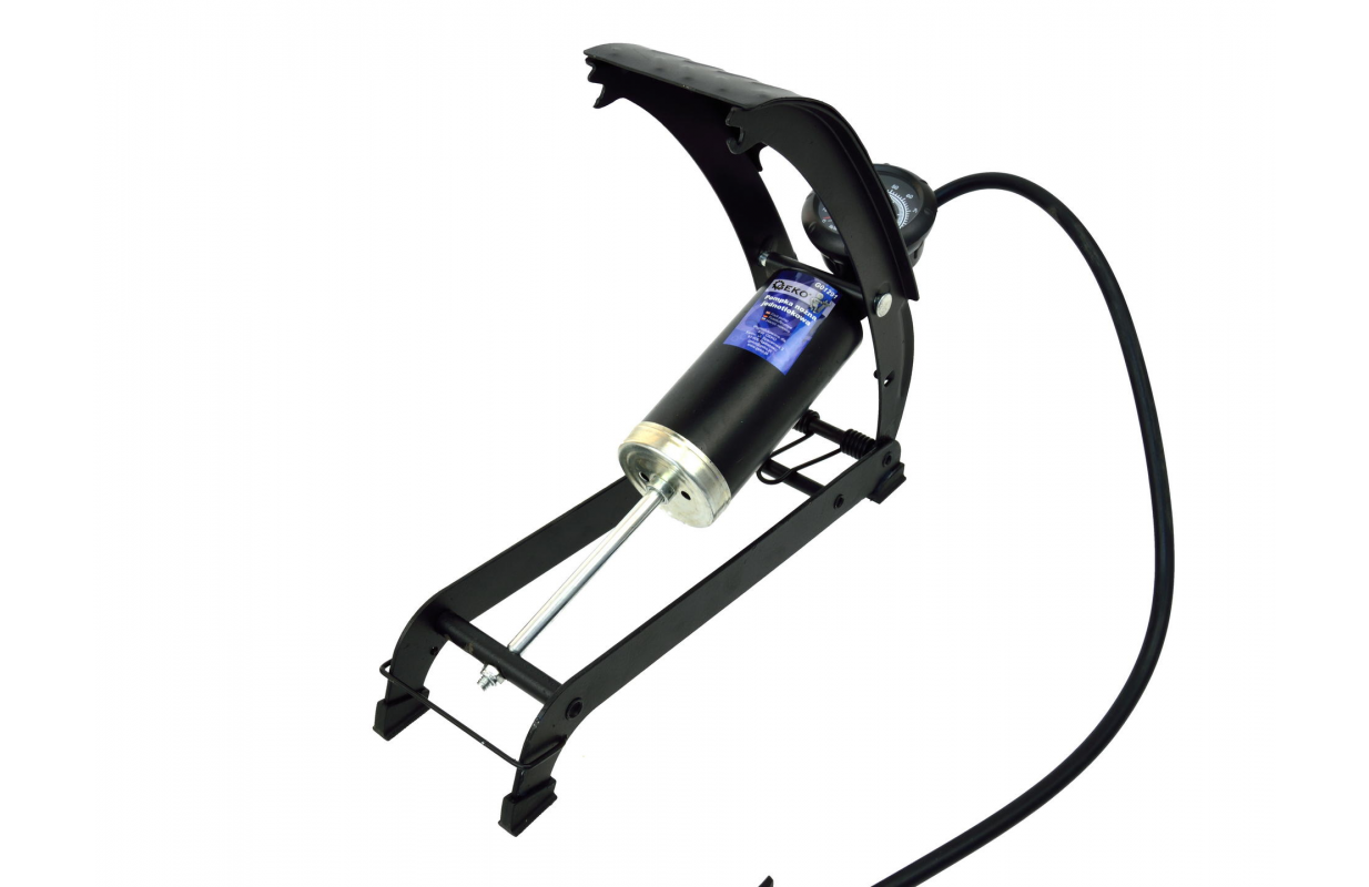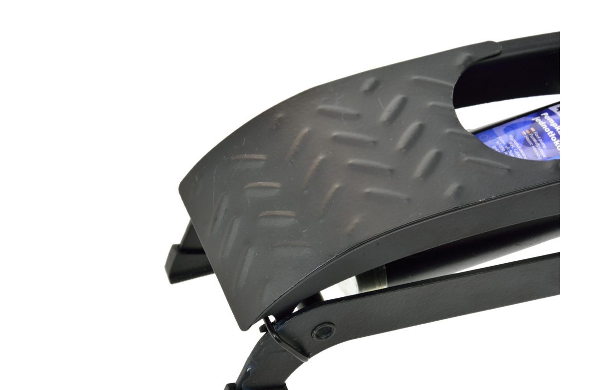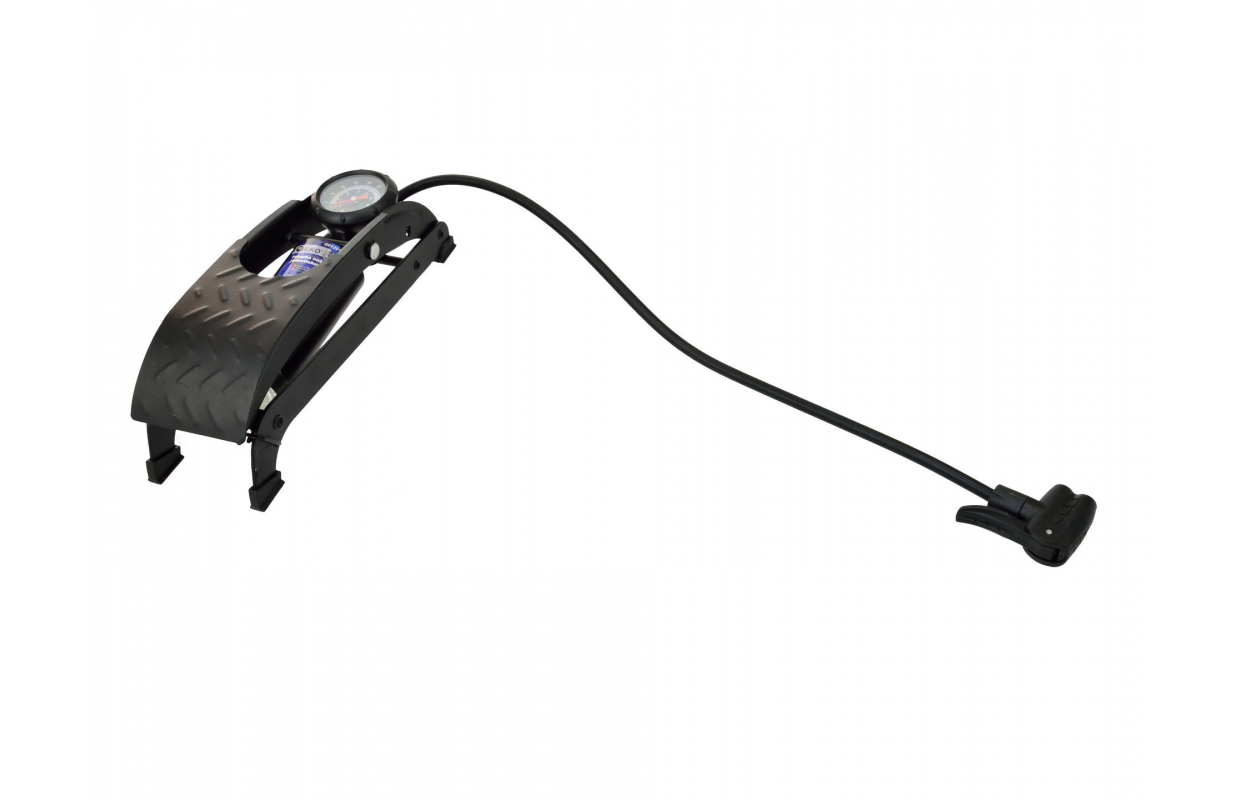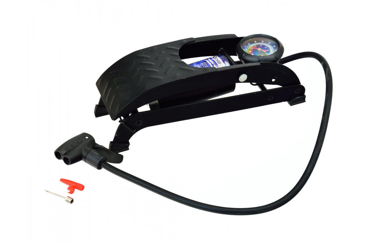 Однопоршневой ножной насос для накачки колес легковых автомобилей, велосипедов, мотоциклов, скутеров, мячей и т.д. В комплект входят универсальные насадки для надувания m.in. мячей и матрасов.
