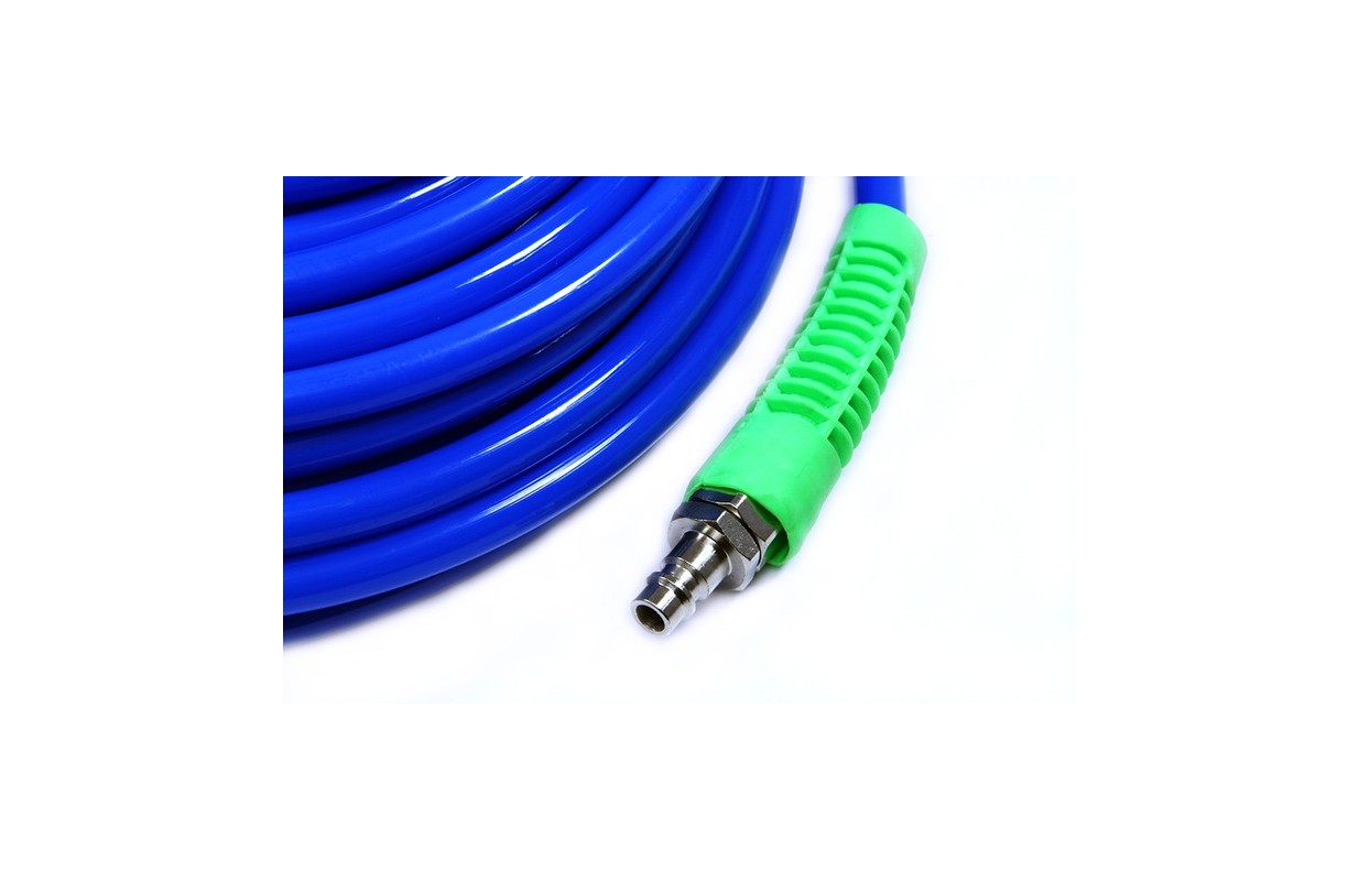 Армированный технический шланг для воздуха с повышенной стойкостью к наличию пневматического масла. Он подходит для питания большинства пневматических инструментов: пистолетов-распылителей, шлифовальных машин, ударных гайковертов и т. д. Оканчивается стандартными пневматическими разъемами. Высокое рабочее давление и широкий диапазон рабочих температур. Шланг прикован к быстроразъемным соединениям.