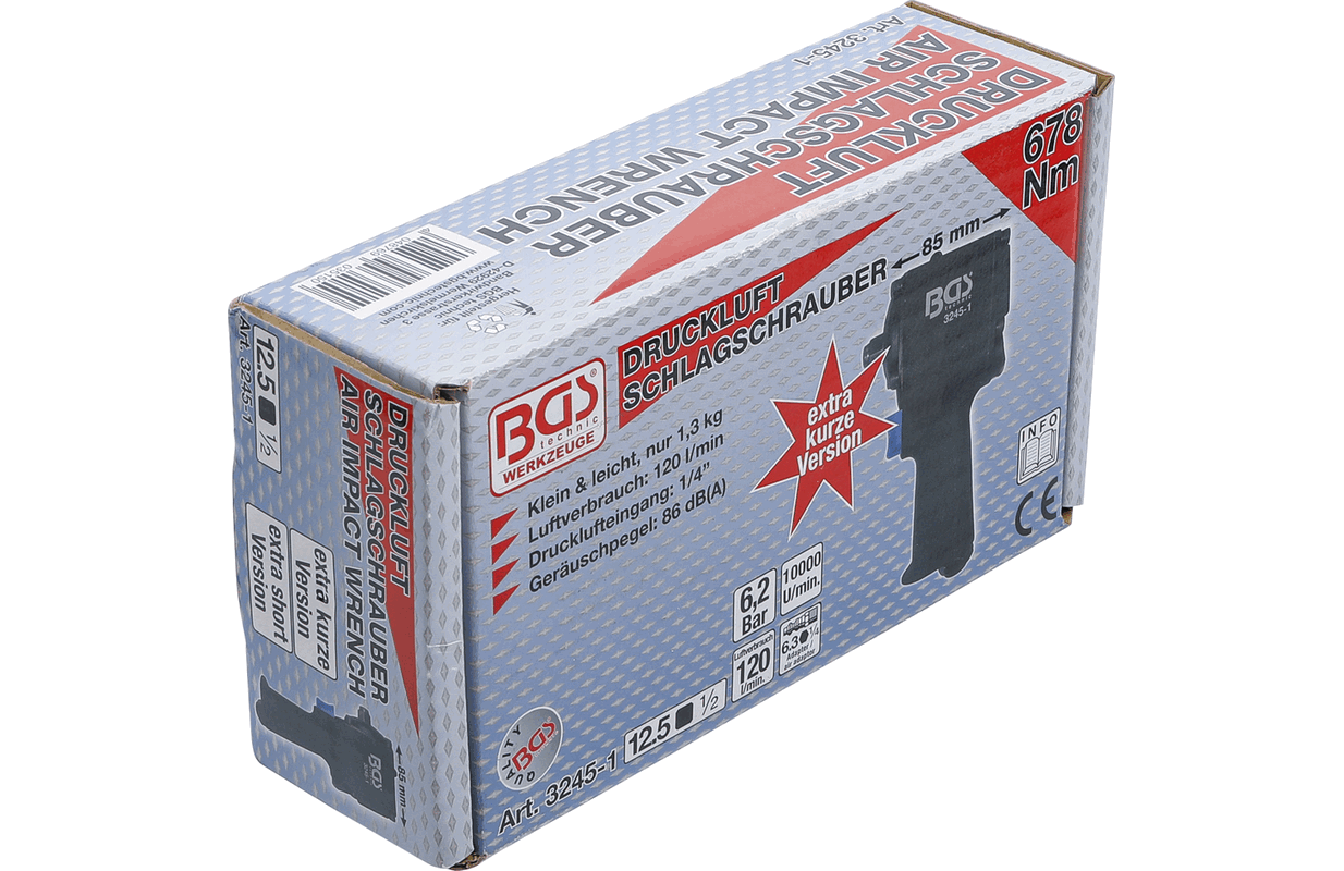 Пневматический ударный ключ | 12,5 мм (1/2") | 678 Нм | очень короткий 98 мм (3245-1)