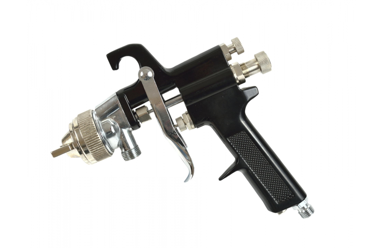 Пневматический краскопульт используется в сочетании с баком для краски. Комплект характеризуется очень хорошими параметрами распыления и высокой скоростью покраски. Ширина распыления до 40 см на расстоянии 20 см от окрашиваемой поверхности.
