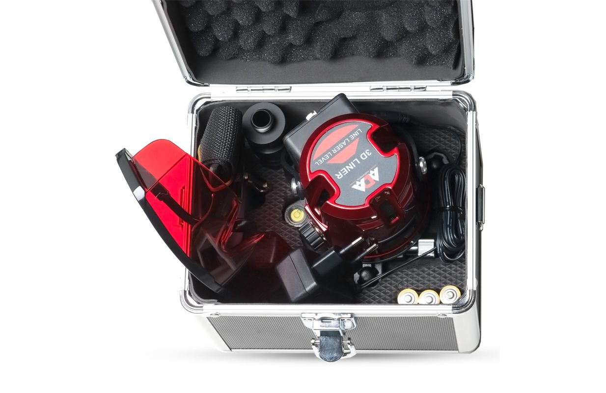 Приемник может применяться в радиусе до 50м — для применения на улице. ADA 3D Liner имеет компенсатор для быстрого самовыравнивания. Компенсатор работает в диапазоне до ±3°. При отклонении прибора от горизонтальной плоскости более, чем на ±2° включается сигнализация (мигание излучателей). Механизм точной регулировки поворота облегчает точное наведение прибора. Компенсатор блокируется автоматически при выключении питания. Это защищает его от воздействия вибрации во время перемещения.