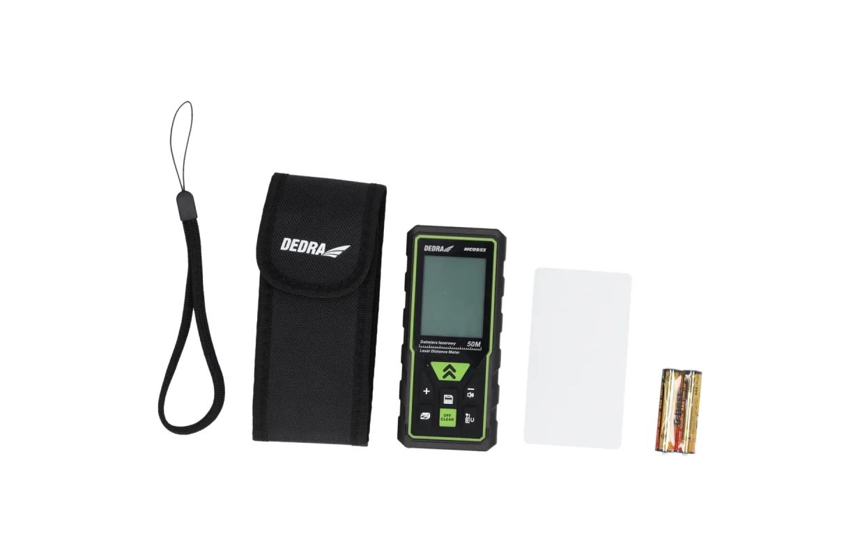 Диапазон измерения лазерного дальномера составляет от 5 мм до 50 м с сенсационной точностью ±2 мм/10 м, что дает очень высокую точность по сравнению со стандартными методами измерения, а время измерения несравнимо меньше. В случае высокой инсоляции стоит использовать прилагаемую отражающую пластину, которая облегчает измерения в таких условиях, а также позволяет проводить измерения на зеркальных, стеклянных, сильно поглощающих свет и других поверхностях, на которых прямое измерение лазерным лучом было бы невозможно.