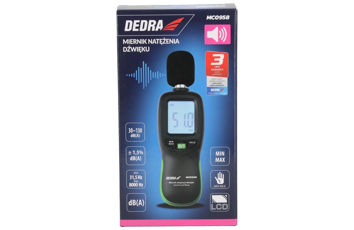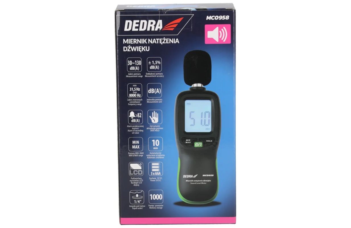 Измеритель интенсивности звука DEDRA MC0958 – это усовершенствованный прибор для точного измерения уровня звука в различных условиях.