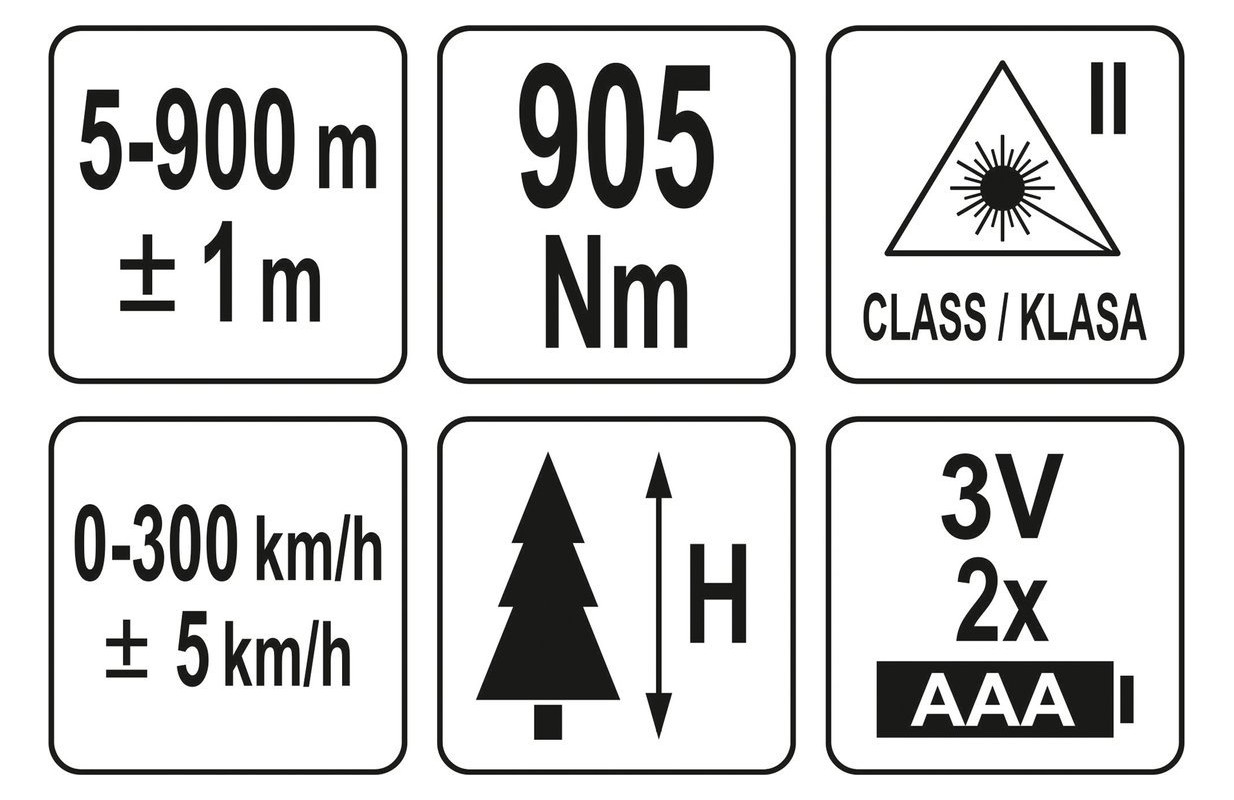 Лазерный дальномер для измерения расстояний в диапазоне от 5 до 900 м. Он также имеет функции измерения высоты, измерения угла, измерения скорости. Особенностью прибора является большой диапазон измерения, которым чаще всего пользуются спортсмены, гольфисты, охотники и туристы... Результаты измерений видны в поле зрения при наблюдении за объектом. Его отличает простое, интуитивно понятное управление.