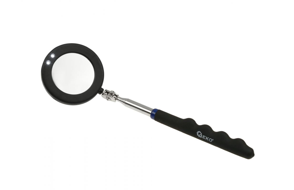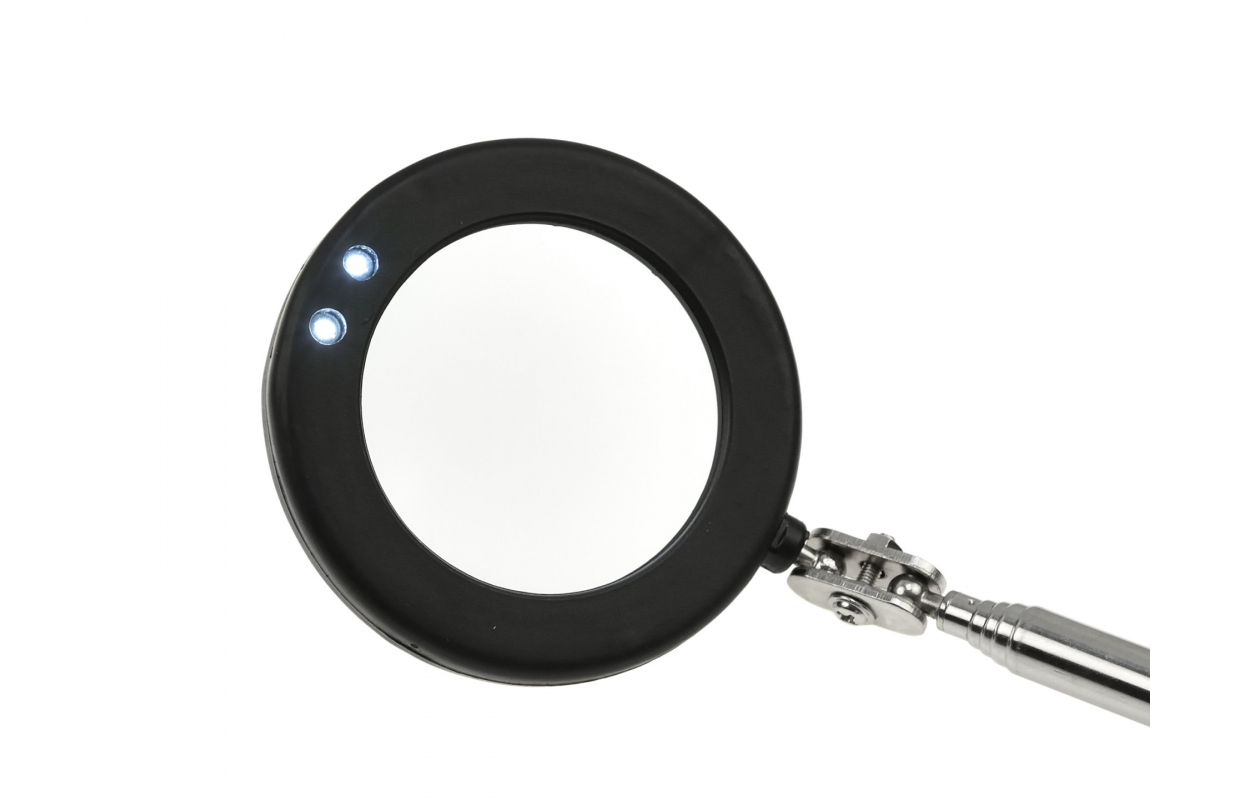 Смотровое зеркало на телескопической стреле, оснащенное двумя светодиодными осветителями. Обязательный продукт в каждой автомастерской. Он позволяет просматривать труднодоступные, скрытые элементы конструкции автомобилей, машин и т.д.