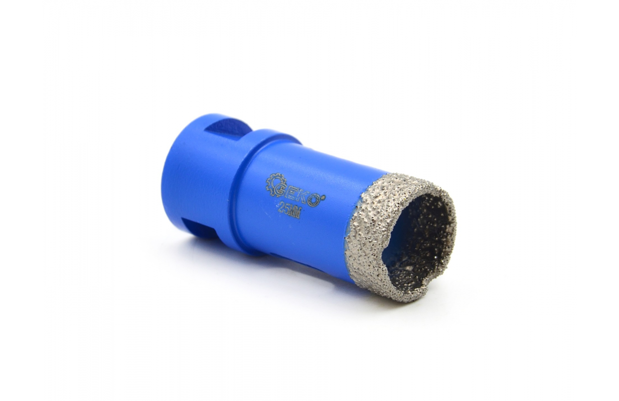 Алмазная пила, предназначенная для сухого сверления. Оснащен монтажной резьбой М14 для монтажа в угловые шлифовальные машины. Идеально подходит для проделывания отверстий в таких материалах, как: керамогранит, керамическая плитка, клинкер, глазурь.