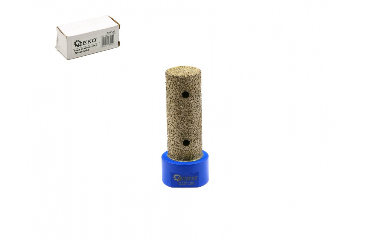 Алмазное сверло для керамогранита. Фреза диаметром 20 мм, оснащенная резьбовым креплением М14 для угловой шлифовальной машины. Предназначен для увеличения отверстий в керамограните, граните, мраморе, керамике и натуральном камне. Для сухого хода.